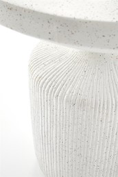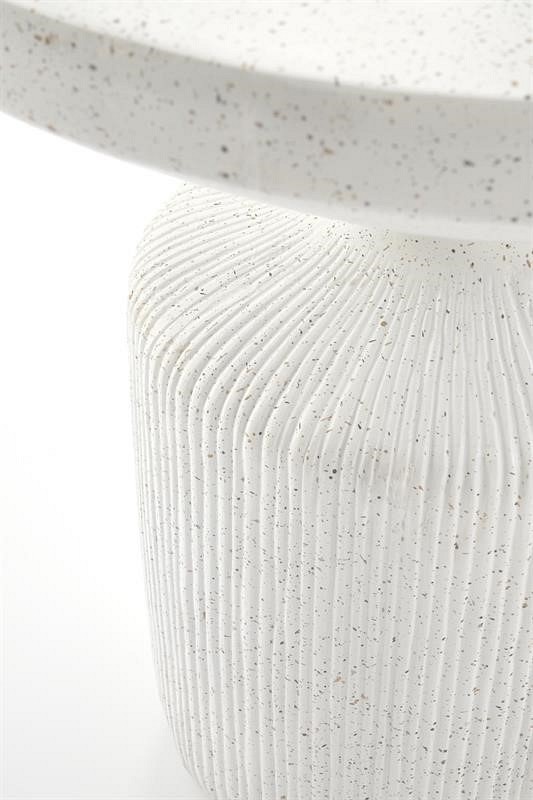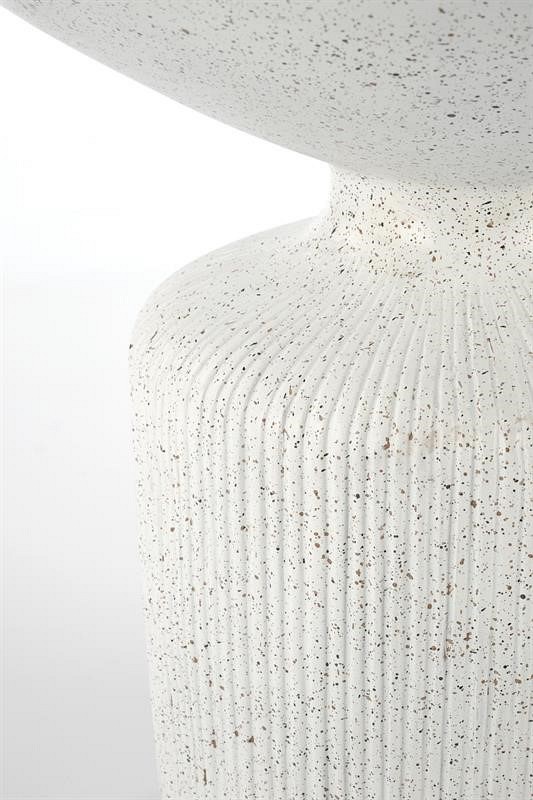 Stolik kawowy GIZA to niezwykły okrągły stolik kawowy do salonu. Biały stolik kawowy wykonany jest w całości z rdzy magnezowej. Tlenek magnezu był używany jako materiał budowlany od tysięcy lat i był używany jako zaprawa w egipskich piramidach. Jest to również produkt ekologiczny. Design mebla sprawia, że jest on idealną ozdobą stolika kawowego GIZA. Stolik ustawiony obok sofy, fotela czy narożnika pozwala stworzyć wygodne siedzisko, a na kocu zmieści się książka, pilot i filiżanka z herbatą lub kawą.