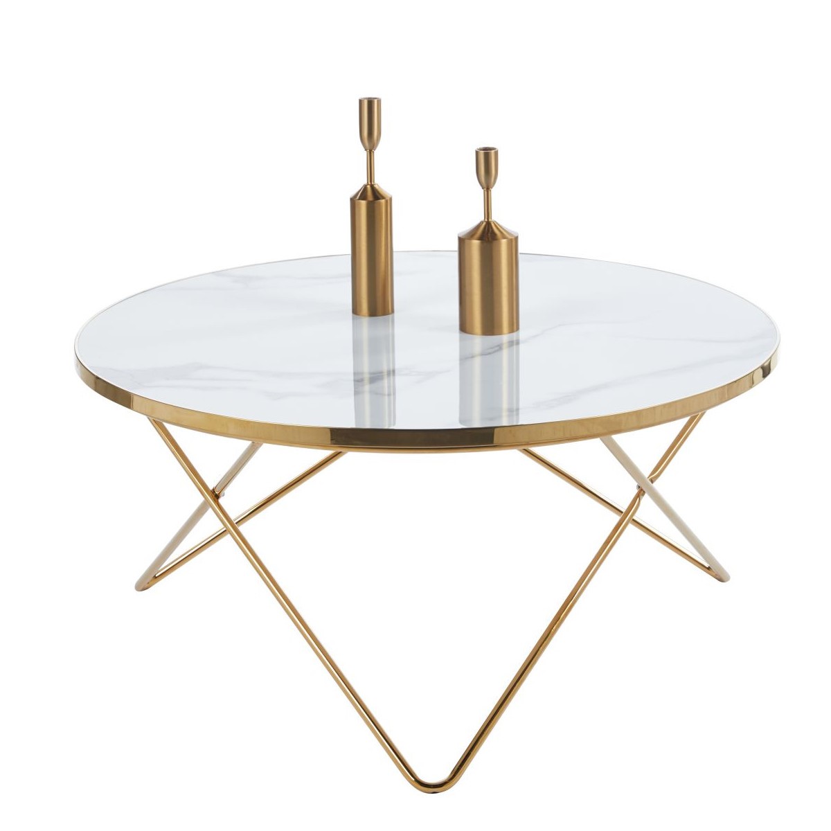 Ława L13-FX (G) fi80 Biały Marmur/Złoty