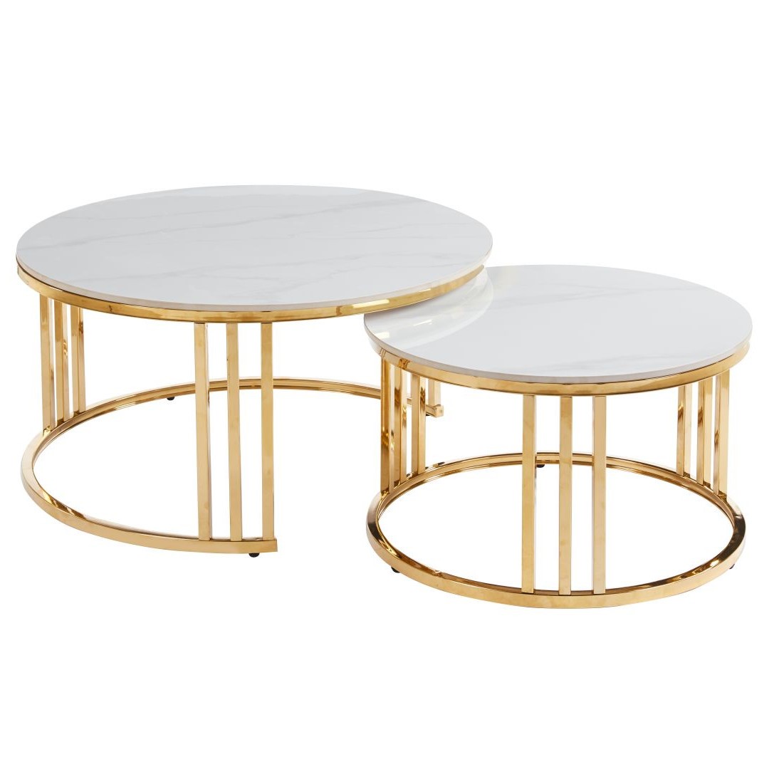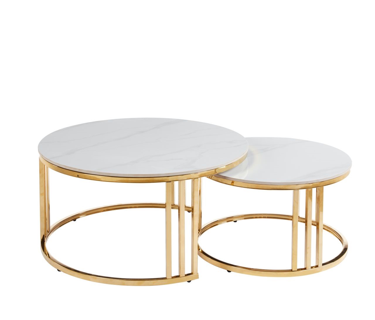 Zestaw dwóch okrągłych ław to stylowe i praktyczne rozwiązanie, które doskonale sprawdzi się w salonie lub pokoju dziennym. Dzięki zróżnicowanym rozmiarom, ławy można ustawić razem – tworząc efektowną kompozycję – lub osobno, w zależności od potrzeb. Stabilne podstawy nadają meblom elegancki wygląd oraz gwarantują solidność konstrukcji. Połączenie połyskującej powierzchni i minimalistycznej formy sprawia, że ławy świetnie komponują się z wnętrzami nowoczesnymi, glamour czy loftowymi. Zestaw jest nie tylko estetyczny, ale też funkcjonalny – mniejsze ławy można wsunąć pod większe, oszczędzając miejsce. To idealny wybór dla osób ceniących styl, wygodę i praktyczne rozwiązania w aranżacji wnętrz.