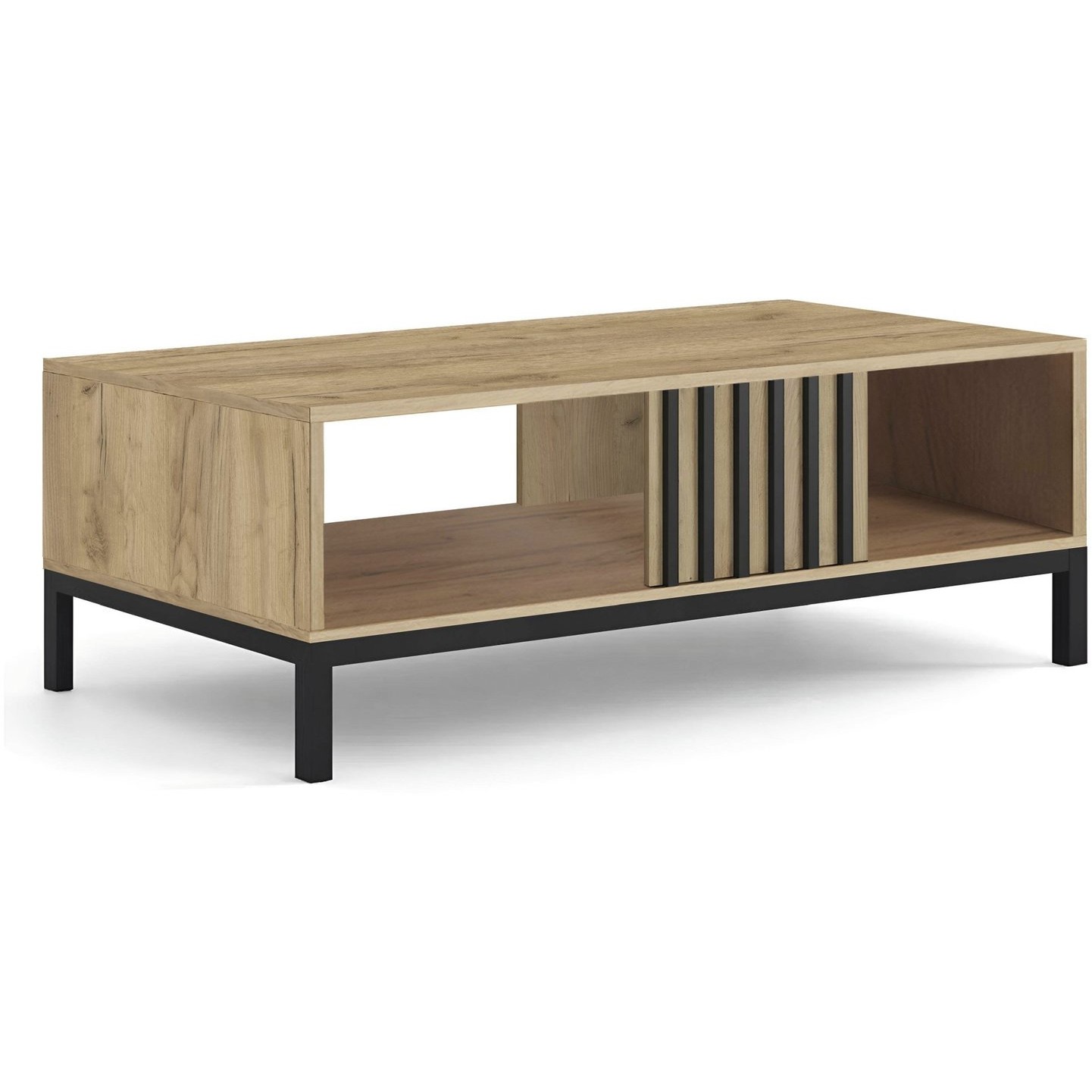 Ława z systemu mebli LAMINO to połączenie funkcjonalności z elegancją, które wzbogaca każde wnętrze swoim wyjątkowym stylem. Wykonany z wysokiej jakości płyty laminowanej w ciepłym odcieniu dębu craft, dodaje pomieszczeniu naturalnego uroku i przytulności. Jedną z charakterystycznych cech tej ławy jest półka umieszczona na czarnej podstawie, która nie tylko zapewnia dodatkową przestrzeń do przechowywania różnych przedmiotów, ale także nadaje mu wyjątkowego charakteru i funkcjonalności. Stylowy akcent z boku w postaci zdobienia lamelami dodaje jej nowoczesności i elegancji. Ława LAMINO doskonale współgra z innymi elementami tej kolekcji, tworząc spójną i harmonijną aranżację w pomieszczeniu. To nie tylko praktyczny mebel do codziennego użytku, ale również piękny i stylowy dodatek, który wzbogaca wystrój każdego wnętrza.