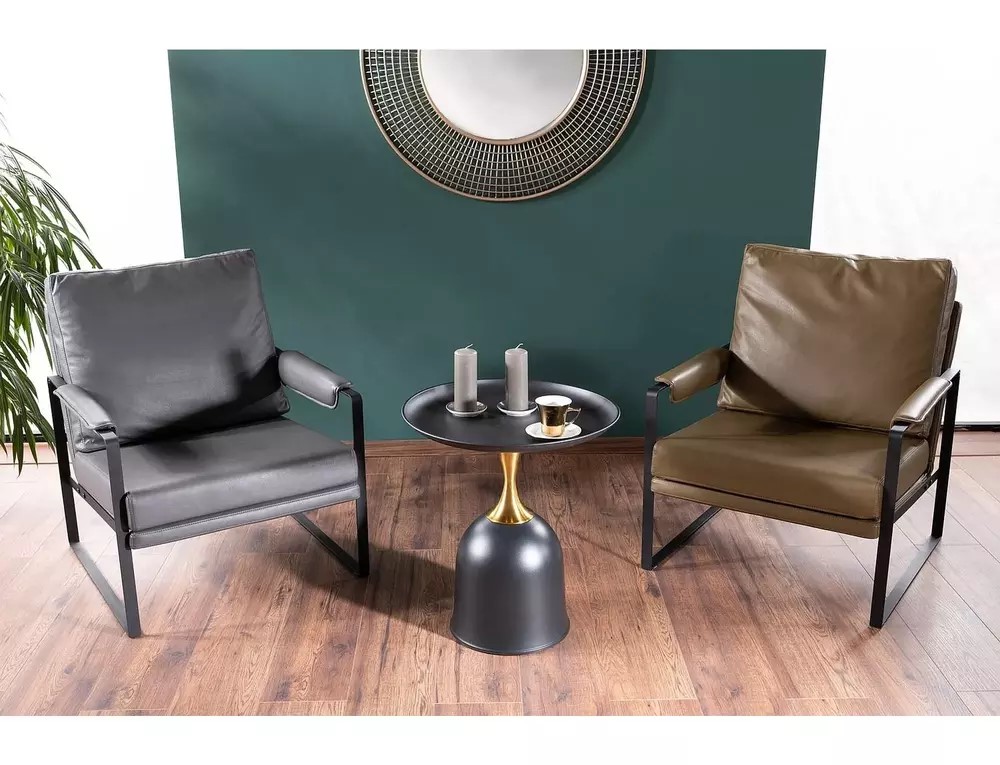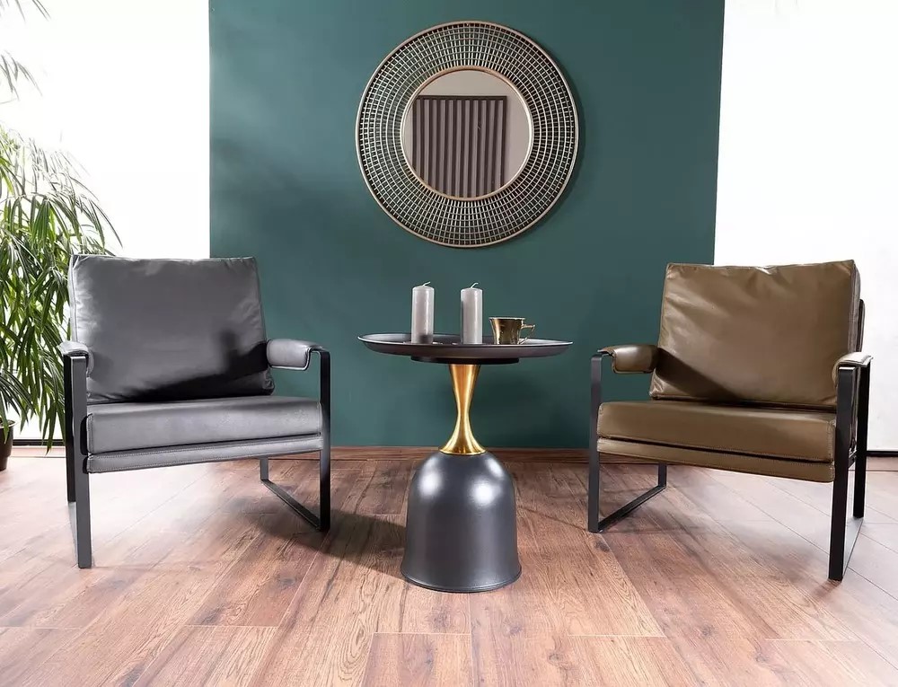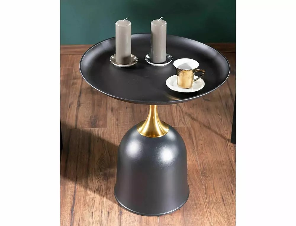 Okrągła ława o średnicy 51 cm to stylowy dodatek do każdego wnętrza. Wykonana w całości z metalu, posiada blat oraz stelaż w czarnym matowym wykończeniu, co nadaje jej nowoczesny wygląd. Złote szczotkowane akcenty na stelażu dodają jej elegancji i subtelnego luksusu. Ława idealnie wpasuje się w nowoczesne aranżacje, wprowadzając do przestrzeni zarówno funkcjonalność, jak i stylowy design.
