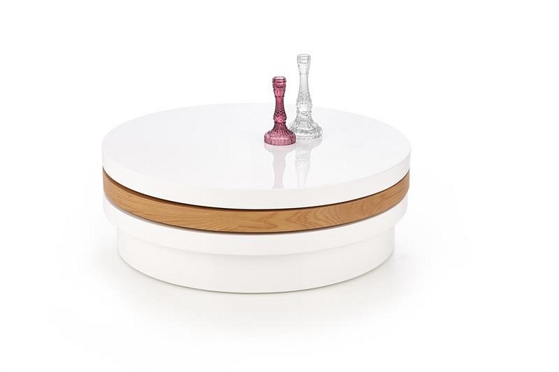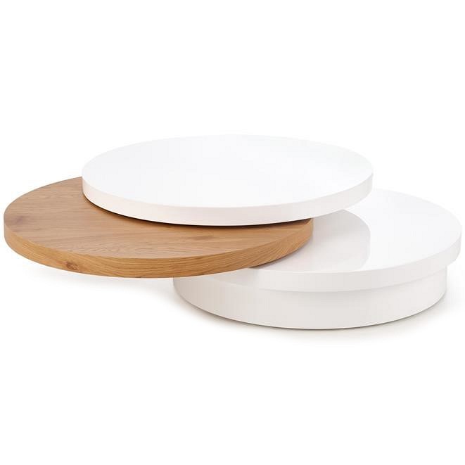 Ława Michelle swoim kształtem przypomina krążek, który doskonale sprawdzi się we wnętrzach minimalistycznych, urządzonych w stylu skandynawskim, shabby chic czy nawet pop art - oczywiście w towarzystwie odpowiednich dodatków. Wykonano ją z lakierowanej płyty MDF, dzięki czemu jest ona łatwa w czyszczeniu oraz wykazuje duża odporność na wilgoć. Swoją funkcję najlepiej spełni w towarzystwie niskich kanap i foteli.