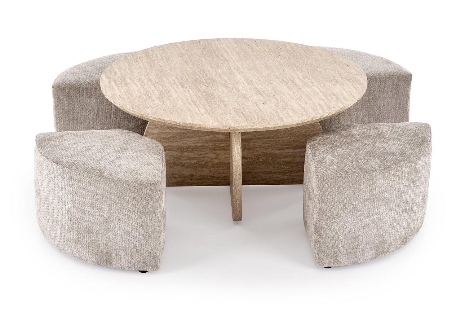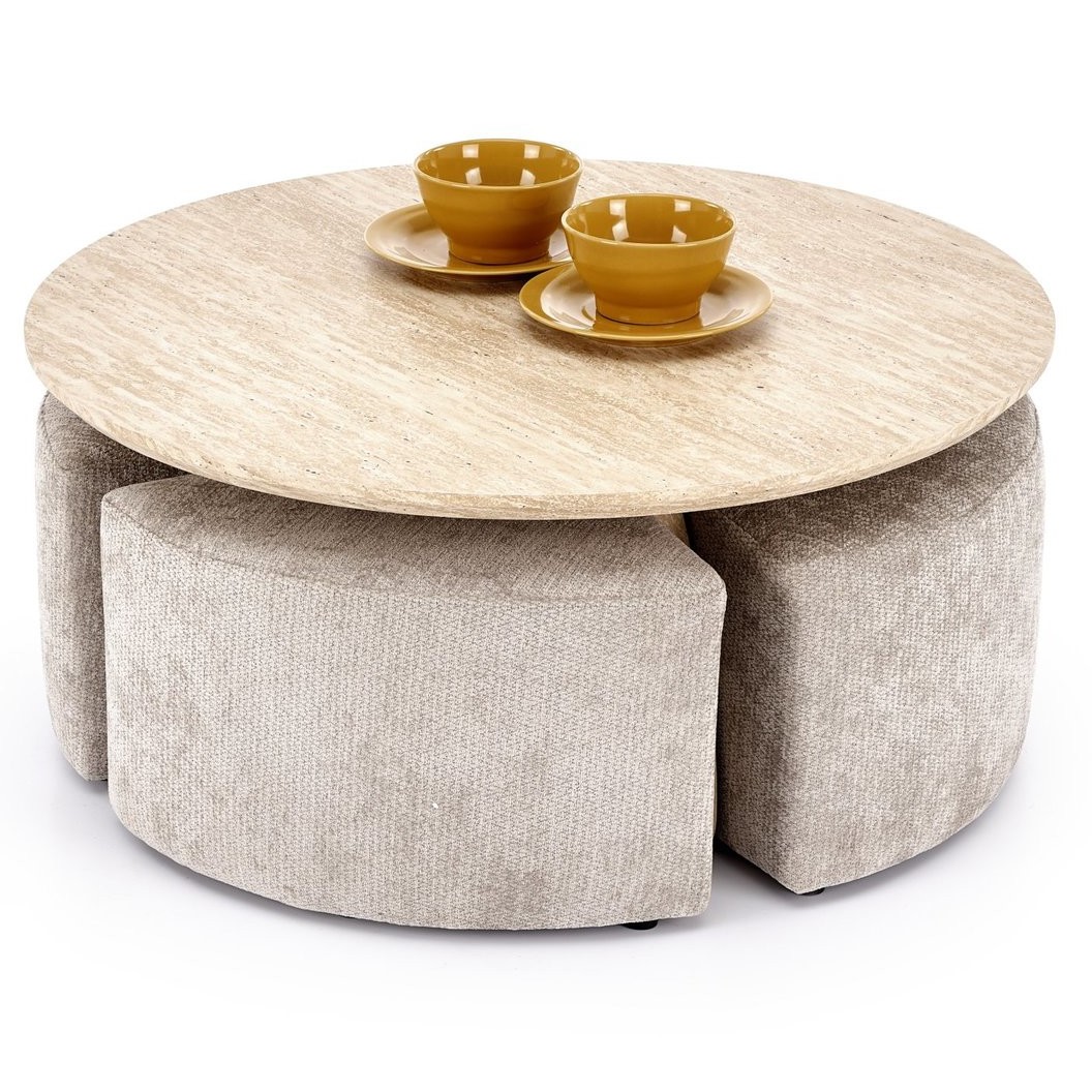 Ława z pufami to funkcjonalny i stylowy zestaw mebli do salonu, który łączy w sobie stolik kawowy oraz dodatkowe miejsca do siedzenia. W komplecie znajduje się ława oraz dopasowane pufy, które można wygodnie wsunąć pod blat, dzięki czemu zestaw zajmuje mniej miejsca. Takie rozwiązanie sprawdza się szczególnie w mniejszych pomieszczeniach lub podczas spotkań z rodziną i znajomymi. Solidna konstrukcja zapewnia stabilność oraz trwałość w codziennym użytkowaniu. Pufy mogą służyć jako dodatkowe siedziska, podnóżki lub małe stoliki pomocnicze. Nowoczesny design sprawia, że zestaw łatwo dopasować do różnych aranżacji wnętrz.