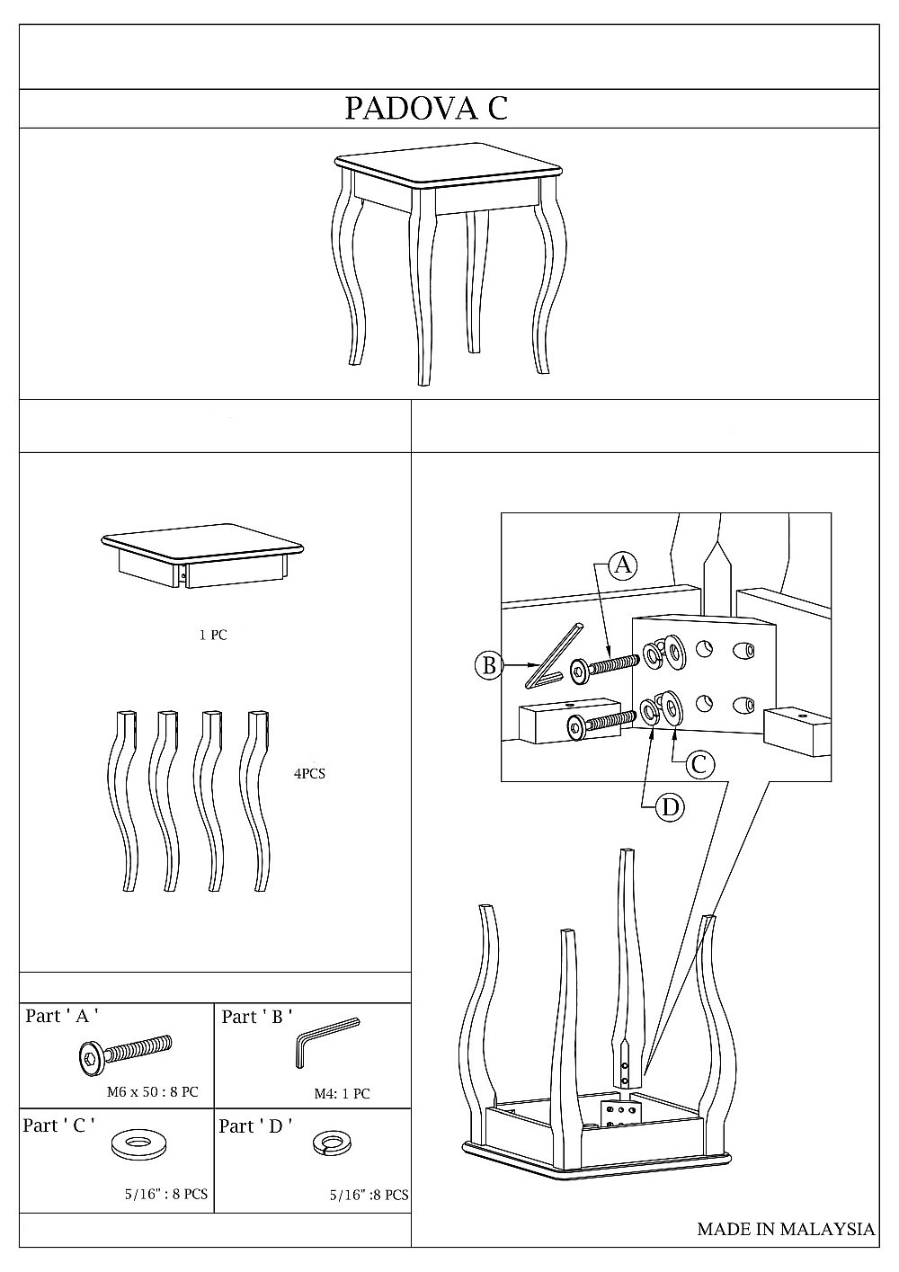 Ława PADOVA C charakteryzuję się swoim ponadczasowym wyglądem. Blat wykonany jest z trwałej płyty MDF pokrytej fornirem w kolorze ciemnego orzechu. Stelaż budują cztery nietuzinkowo wygięte nogi zbudowane z drewna.