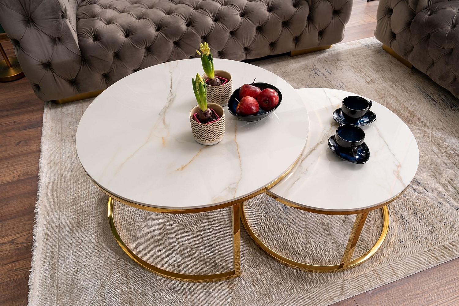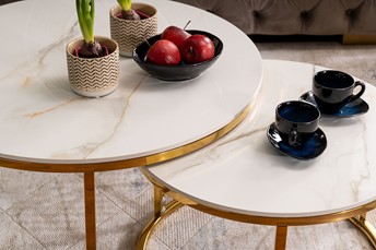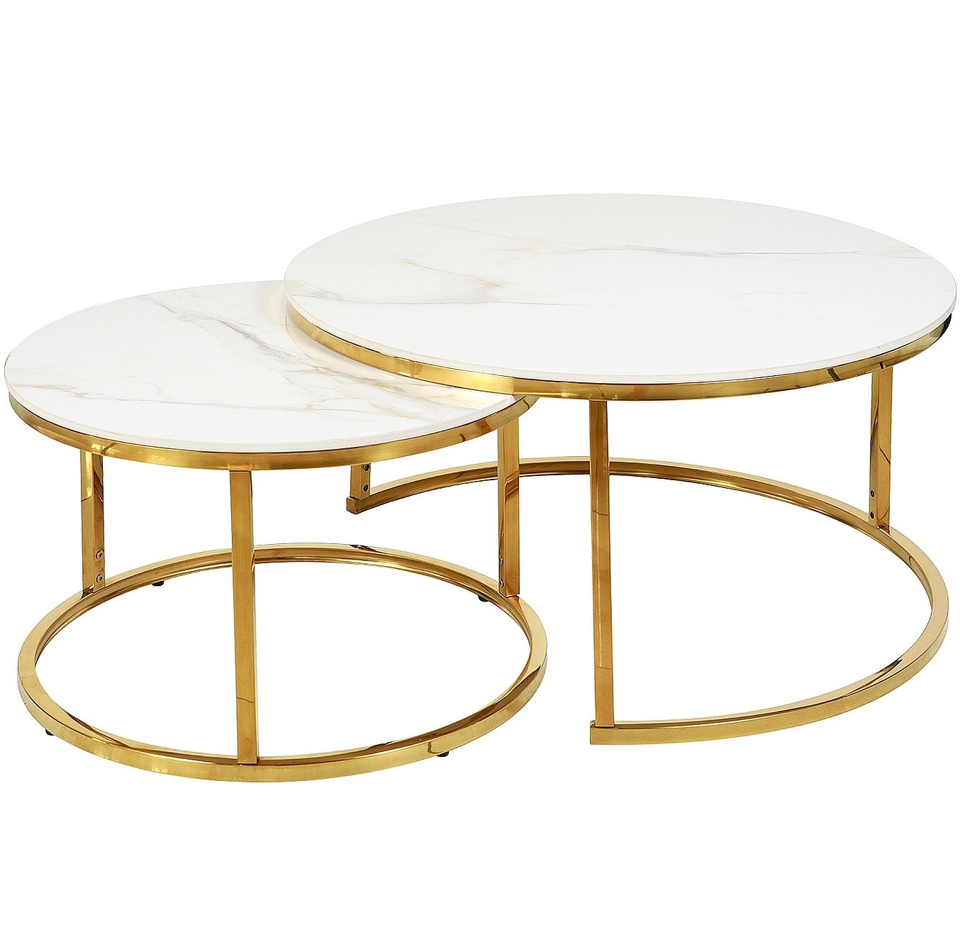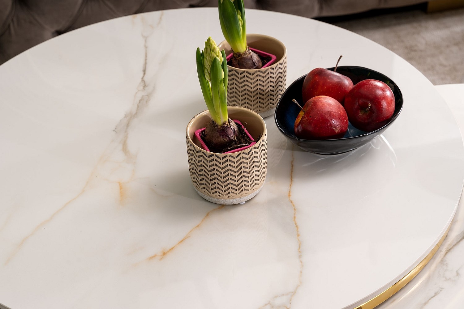 Ława SALMA Fi80 Biały Efekt Marmuru/Złoty