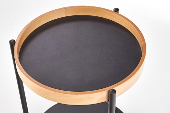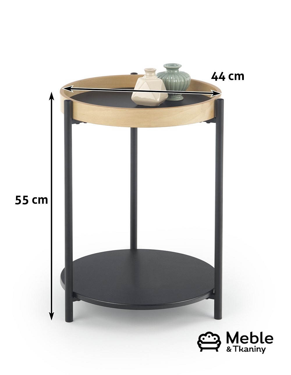Rolo – przedstawiciel stylu rustykalnego. Wybierając ją możemy mieć pewność, że posłuży nam naprawdę wiele lat. Wszystko dzięki wykorzystaniu do jej produkcji trwałych, odpornych na zniszczenia i łatwych w czyszczeniu materiałów. Brzeg górnego blatu wykonano ze sklejki giętej w kolorze dębu naturalnego, a stelaż z czarnej stali malowanej proszkowo. Polecana szczególnie w połączeniu z sofą bądź narożnikiem.