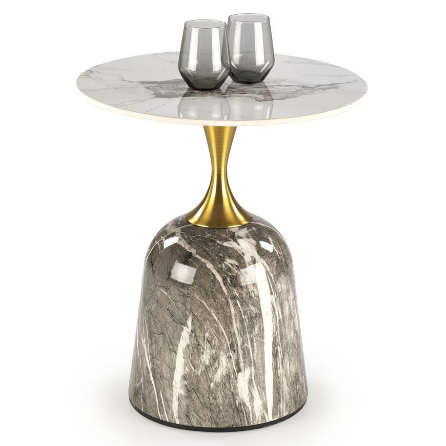 Ta nowoczesna ława to połączenie minimalistycznego designu z solidnością wykonania. Została wykonana z wytrzymałego materiału o nazwie spiek, gwarantując trwałość i estetykę. Jej okrągły blat o wymiarach 50 cm x 50 cm sprawia, że jest funkcjonalna i kompaktowa jednocześnie. Stelaż, dwukolorowy w odcieniach popielatego i złotego, nadaje ławie unikalny charakter i umożliwia dopasowanie do różnych aranżacji wnętrz. To idealne rozwiązanie dla tych, którzy poszukują funkcjonalnego, nowoczesnego elementu do swojego pomieszczenia.