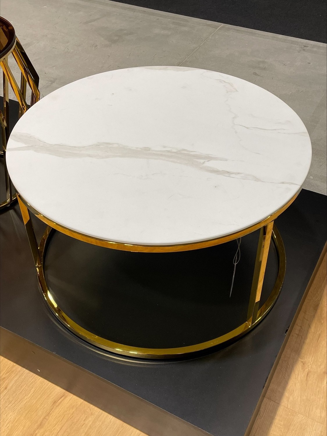 Ława SABINE fi80 Złoty/Biały Efekt Marmuru