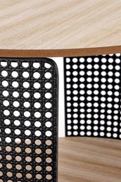 Idealna propozycja do wnętrz w stylu loft. Pokrycie stolika kawowego oraz półka wykonane są z płyty MDF pokrytej naturalną okleiną. Podstawa ze stali proszkowanej w kolorze czarnym. Metalowa podstawa idealnie komponuje się z naturalnym kolorem blatu. Stolik kawowy TRAFICA to niewielki stolik do salonu, salonu lub poczekalni. Jest lekki i możemy go przenieść w dowolne miejsce w dowolnym momencie. Design jest prosty i nie przytłaczający, a jednocześnie doskonale zdobi wnętrze. Dodatkowo zastosowanie półki uatrakcyjnia mebel i zwiększa jego funkcjonalność.