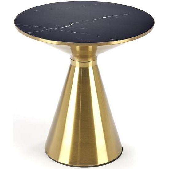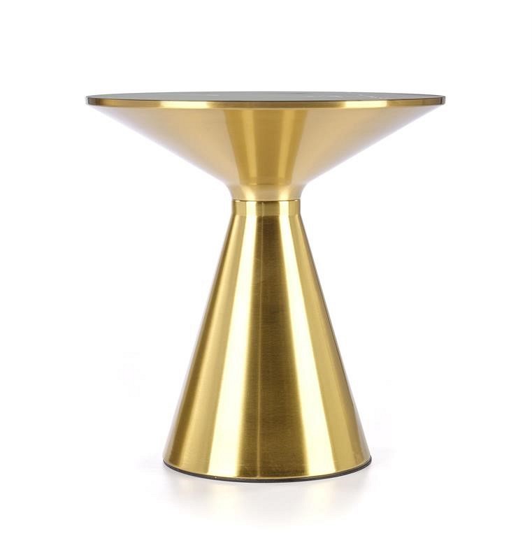 Elegancki stolik kawowy TRIBECA o średnicy 50 cm to mały stolik kawowy, który dzięki pięknemu kształtowi i atrakcyjnej kolorystyce jest doskonałym wyborem do salonu w stylu glamour. Stolik kawowy wykonany jest z połączenia ceramiki z czarnego marmuru i stali nierdzewnej w kolorze złotym. Stożkowa podstawa zapewnia stabilne podparcie całej konstrukcji. Stolik kawowy TRIBECA daje wiele możliwości ustawienia, a dzięki zastosowaniu wysokiej jakości materiałów będzie wyjątkową ozdobą salonu przez długie lata.