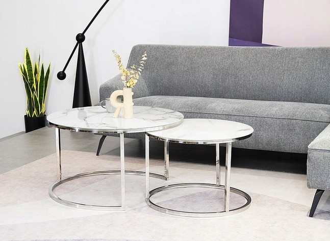 Zestaw 2 Ławy PAOLA Marmur/ZłotyZestaw Dwóch Ław PAOLA Złoty/Czarny MarmurZestaw 2 Ław PAOLA fi60/38 Srebrny/Biały Marmur