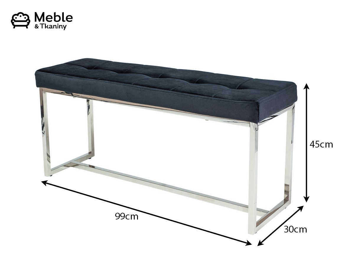 Ławka, tkanina aksamit, kolor: czarny, tap. 105 / metal, kolor: chrom.