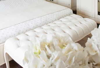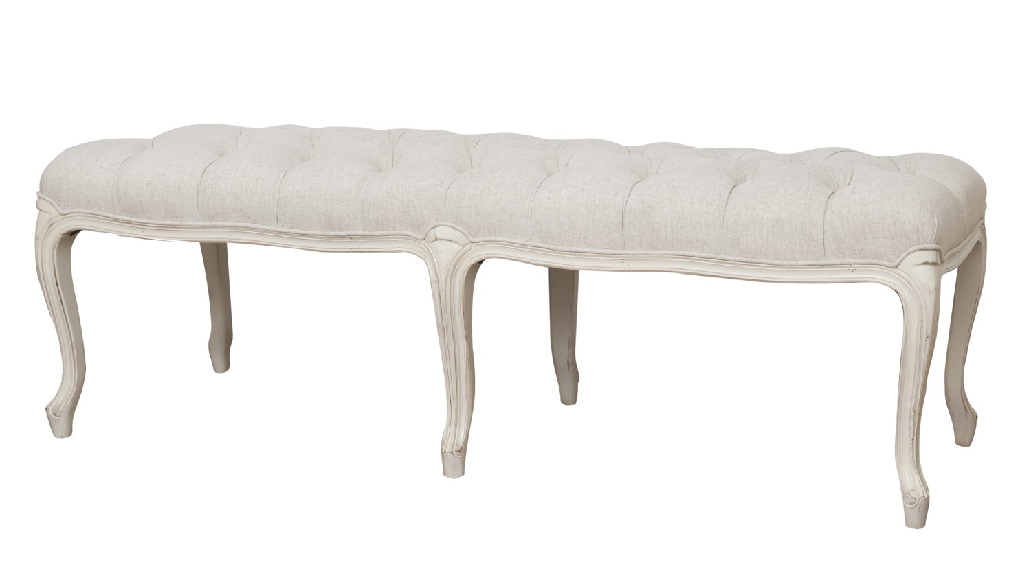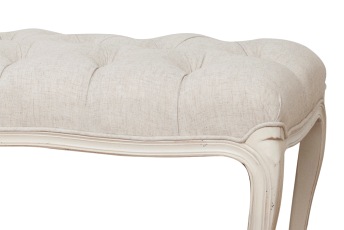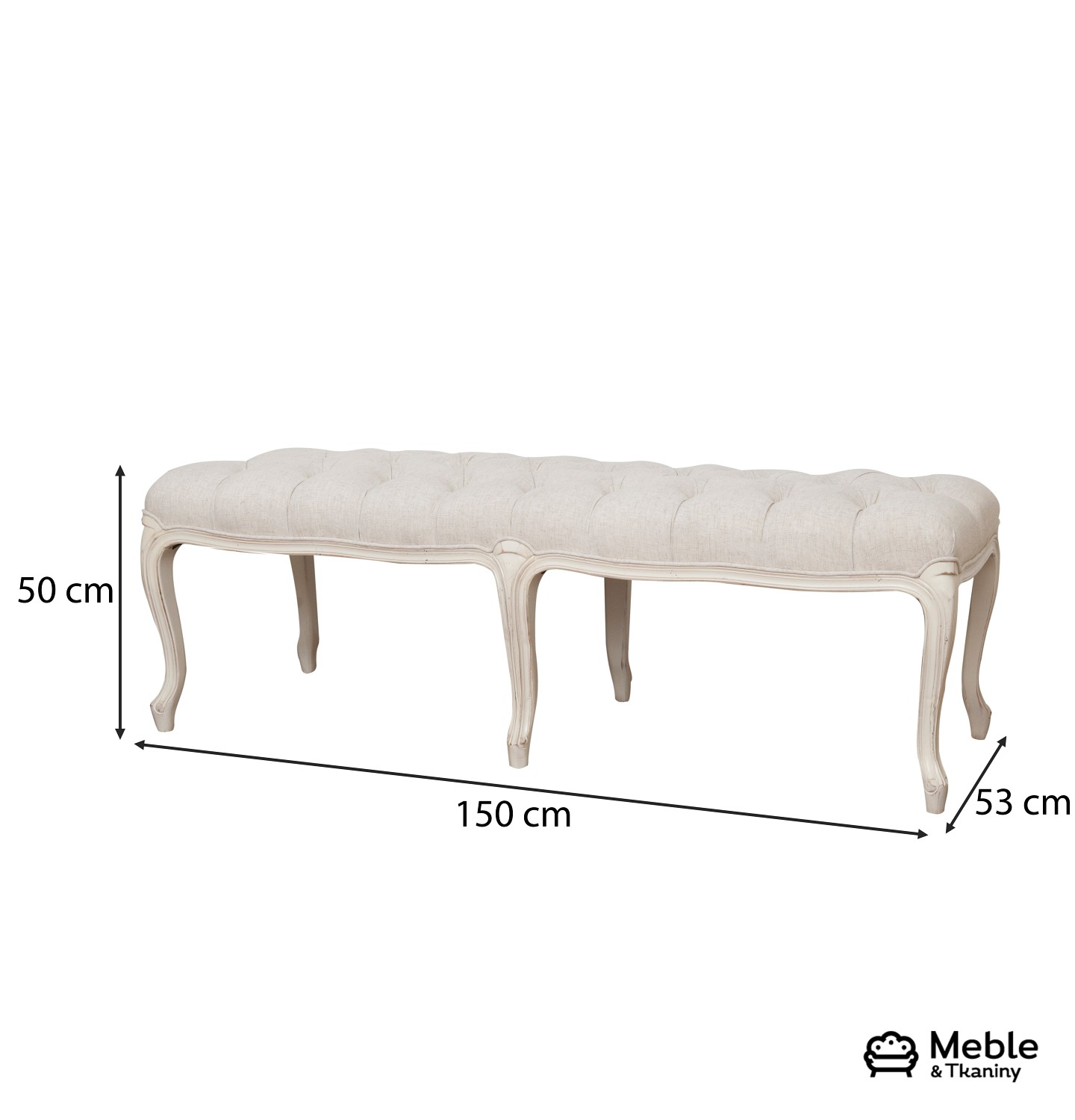 Długa, tapicerowana ława z giętymi nogami to istna perełka. Idealnie sprawdzi się w holu lub postawiona przed łóżkiem. Pikowany materiał jest miękki i zdecydowanie dodaje jej uroku - rewelacyjnie komponuje się z kolorem drewna. Piękny mebel do wnętrz urządzonych w stylu francuskim.
