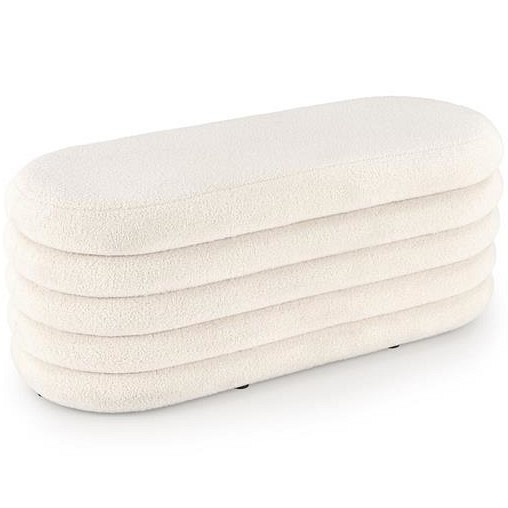 Ławka BLISS to dobre rozwiązanie, jeśli szukasz wygodnej i stylowej sypialni. Ławka jest obita klasyczną kremową tkaniną z wyciętym wykończeniem, które dodaje stylu i elegancji większości dekorów. Dodatkowo ławka posiada schowany pojemnik, co czyni ją funkcjonalnym i ekonomicznym meblem. Ławka BLISS może służyć również jako miejsce do odłożenia książki lub telefonu.