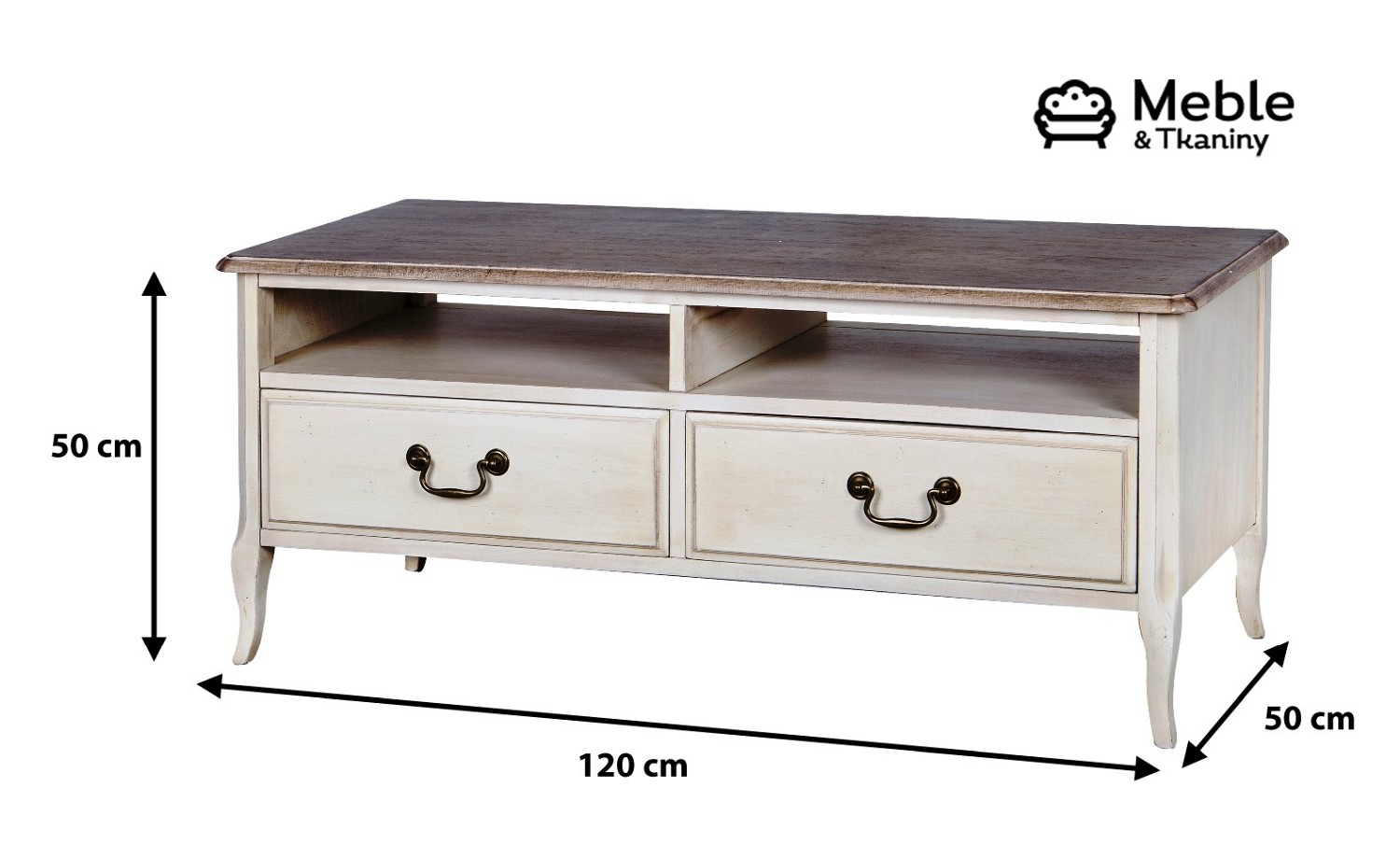 Miłośnicy klasyków i romansów odnajdą się tu znakomicie. Komoda RTV Limena jest niczym podróż w czasie. Kilka epok wstecz, wprost do niezwykłego stylu francuskiego. Komodę charakteryzują przetarcia, wybrarwienia i drewno z widocznym usłojeniem na blacie. Elegancji dodają tu także bogato zdobione uchwyty i tzw. nogi królowej Anny.. Całość w kolorze kości słoniowej z kakaowo-orzechowym blatem. Komoda najlepiej prezentuje się w towarzystwie pozostałych modeli z kolekcji Limena.