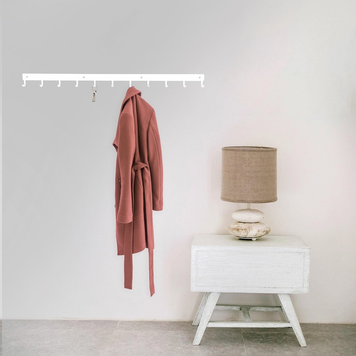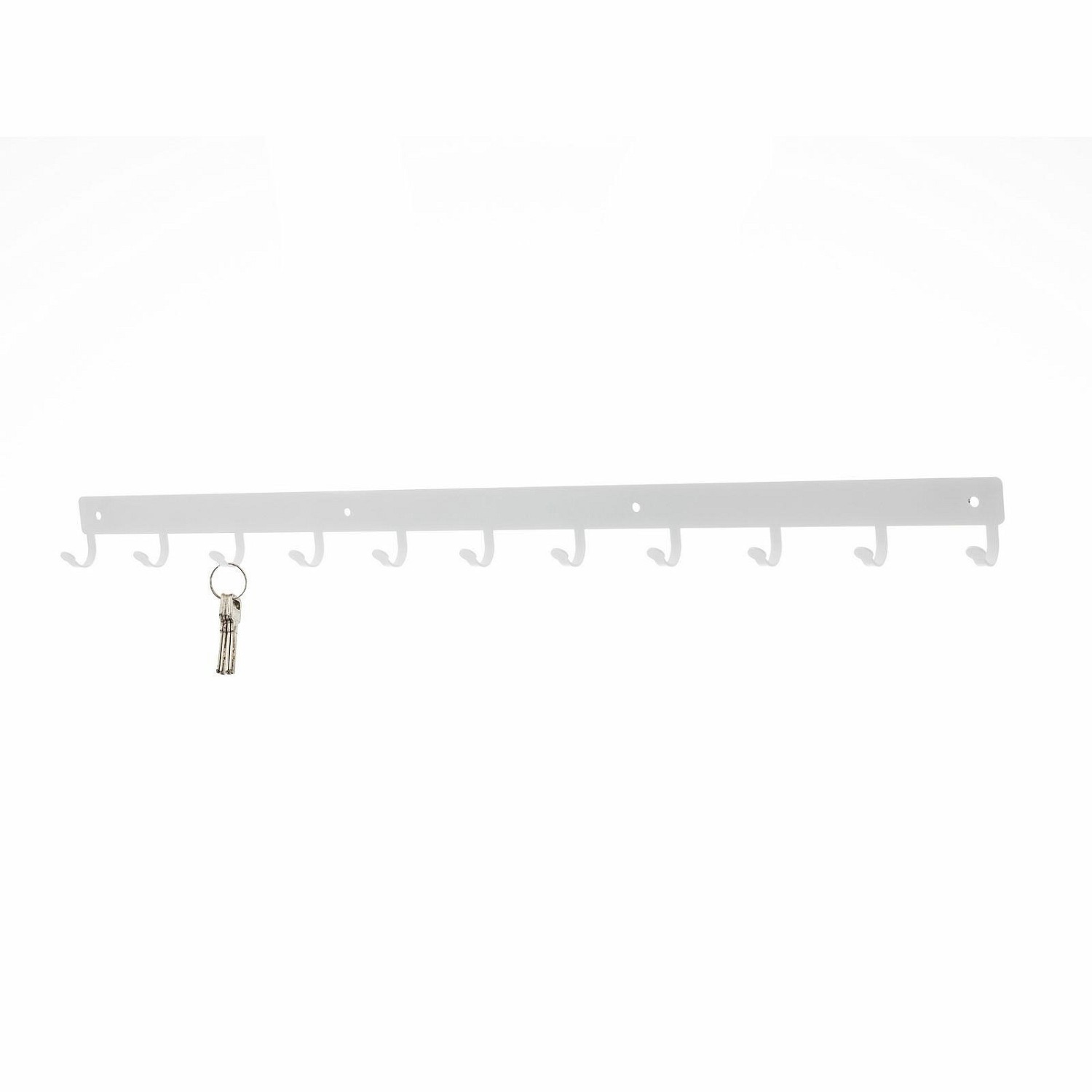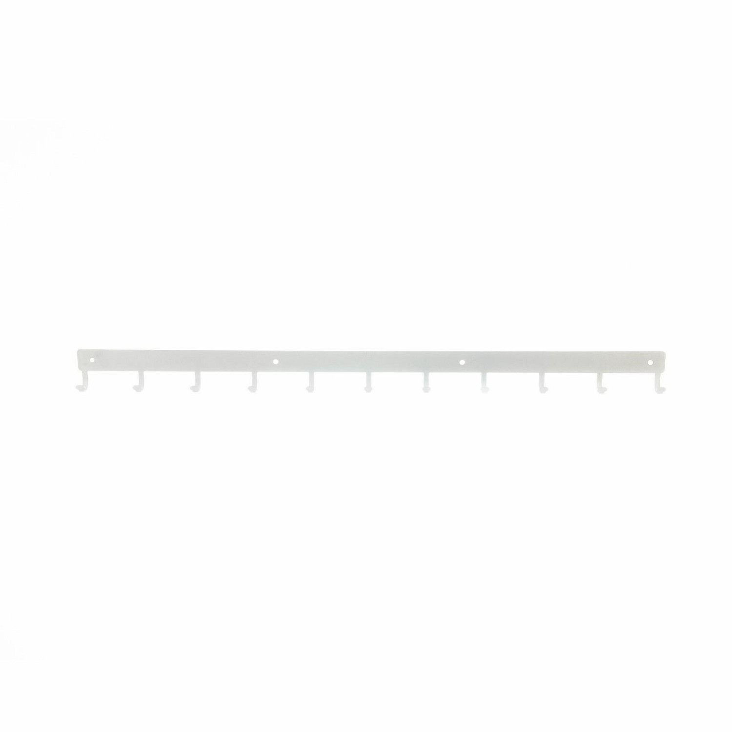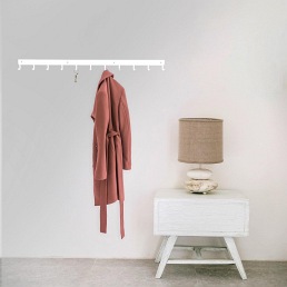 Listwa hakowa to doskonałe rozwiązanie do przedpokoju lub poczekalni. Nowoczesny stalowy wieszak posiada aż 11 haczyków o maksymalnym obciążeniu 3kg każdy. Dzięki wycinanym laserowo, a zarazem wytrzymałym, haczykom listwa jest idealna do przechowywania na niej torebek, kluczy lub odzieży. Produkt jest malowany proszkowo co za tym idzie jest łatwy w czyszczeniu oraz odporny na zarysowania. Dodatkową zaletą jest matowe wykończenie które dodaje klasy oraz elegancji. Listwa hakowa jest dostępna w dwóch kolorach dzięki czemu mamy więcej możliwości aranżacji wnętrza. Maksymalne obciążenie listwy to 33kg. Do wieszaka załączany jest zestaw montażowy, który składa się z kołków, zaślepek i śrubek. Wysokość: 5,5cm Szerokość: 80cm Max. ilość sztuk w kartonie:1 Wymiary kartonu:9cm x 80cm x 5cm Waga opakowania: 2kg