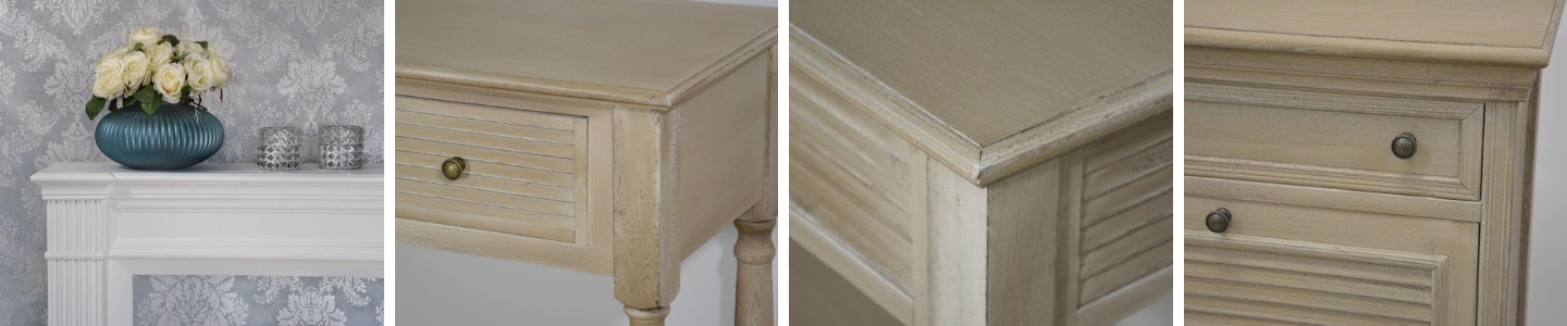 Kolejna propozycja dla fanów stylu prowansalskiego, seria Livorno od sprawdzonego producenta mebli: Livin Hill. Piękne beżowe konsole prowansalskie z charakterystycznymi rzeźbionymi nogami tchną w Twoje wnętrze niezwykły, przytulny, słoneczny styl francuskich wzgórz.