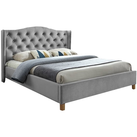 Aksamitne , szare obicie i piękne pikowania to dwie charakterystyczne cechy łóżka ASPEN VELVET. Duża powierzchnia mebla gwarantuje komfort i gwarancję spokojnego snu, a wysoki zagłówek nie tylko dodaje uroku, ale przede wszystkim rewelacyjnie sprawdzi się w roli oparcia na przykład podczas czytania książki. Łóżko zawiera w komplecie stelaż z listew giętych osadzonych w elastycznych uchwytach.