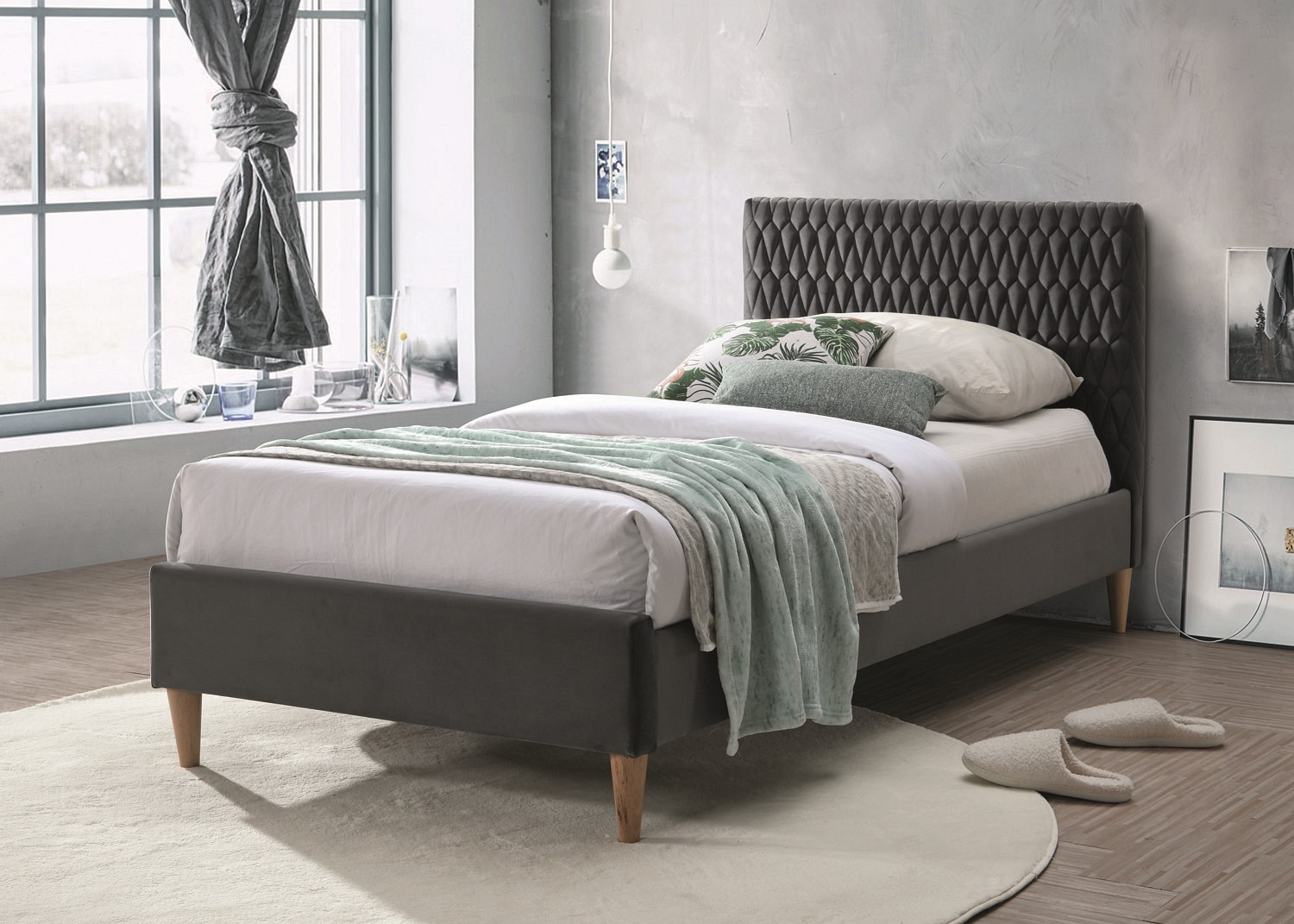 Zastanawiasz się jakie łóżko wybrać do sypialni, by zadbać o wysoki komfort i wygodę podczas snu? Lubisz styl nowoczesny i awangardowy? W takim razie dobrym pomysłem będzie wybranie łóżka tapicerowanego. Polecanym modelem jest łóżko AZURRO VELVET w kolorze szarym, które pochodzi od producenta Signal Meble. Jest to mebel, który wyróżnia się wysoką jakością i jest w stanie spełnić oczekiwania każdego, nawet najbardziej wymagających osób. Chcesz przekonać się, czy warto zdecydować się na jego kupienie? W takim razie zapoznaj się z jego licznymi zaletami: