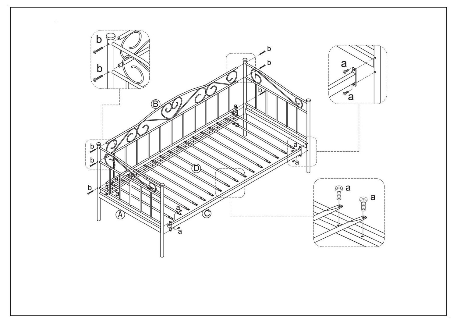 Łóżko sprzedawane jest bez materaca. Stelaż z listew metalowych