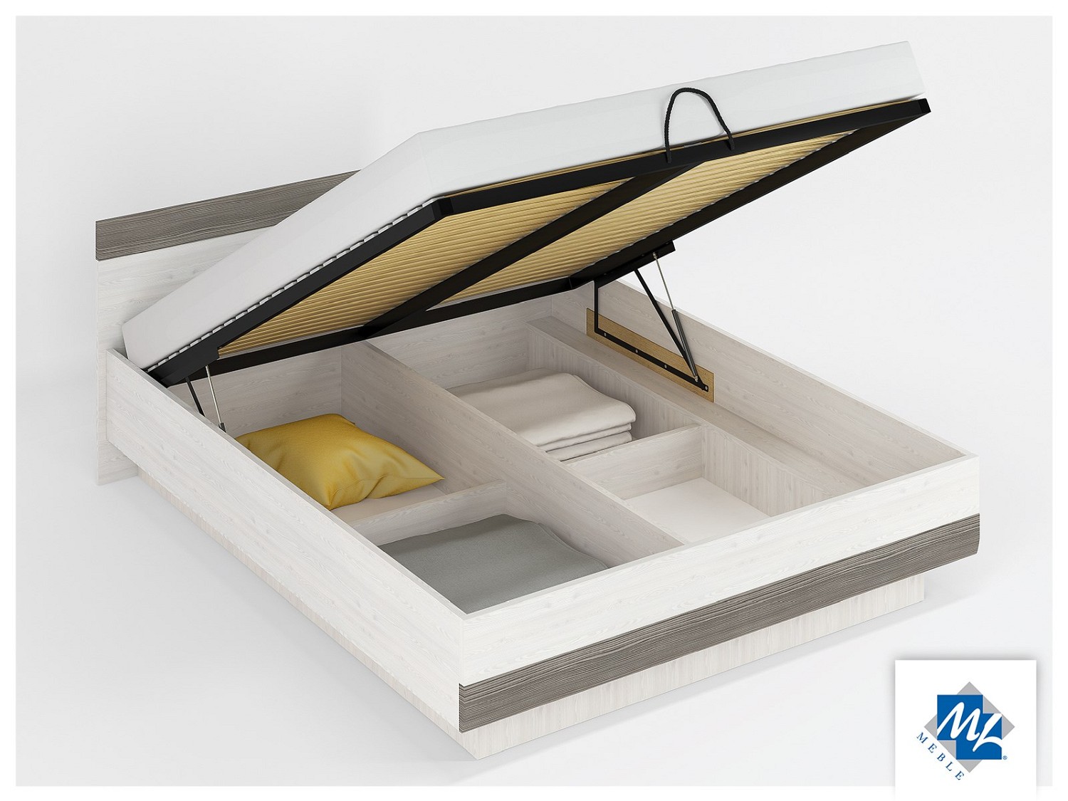 SANNA łóżko dwuosobowe z wysuwanym dolnym matSANNA łóżko dwuosobowe z wysuwanym dolnym mat