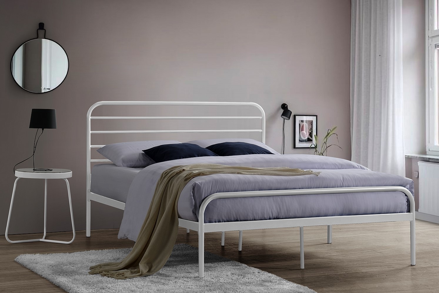 Materiał: Metal, Kolor: Biały. To zestawienie nadaje łóżku wyrazistego wyglądu, jednocześnie umożliwiając łatwe dopasowanie do różnych kolorystyk i stylów wnętrz. Biały metal doskonale komponuje się z wieloma kolorami, tworząc kontrastowy i nowoczesny efekt.
