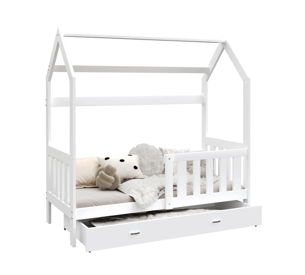 Model ELLIE łączy urok domkowej formy z praktycznym rozwiązaniem w postaci pojemnej szuflady. Malowane na biało drewno nadaje mu świeżości i subtelności, dzięki czemu pasuje do wielu aranżacji dziecięcych pokojów. Łóżko zachęca do zabawy i kreatywności, a zarazem oferuje wygodne miejsce do wypoczynku. Pojemna szuflada pozwala przechowywać pościel lub ulubione zabawki dziecka. To funkcjonalny i stylowy mebel, który rośnie razem z dzieckiem.