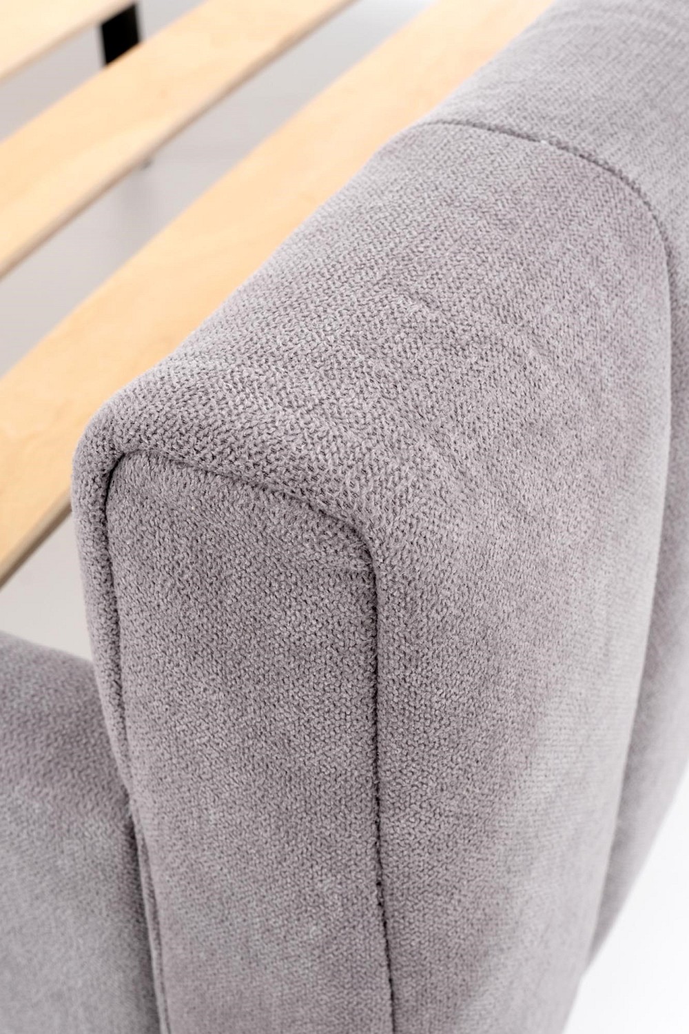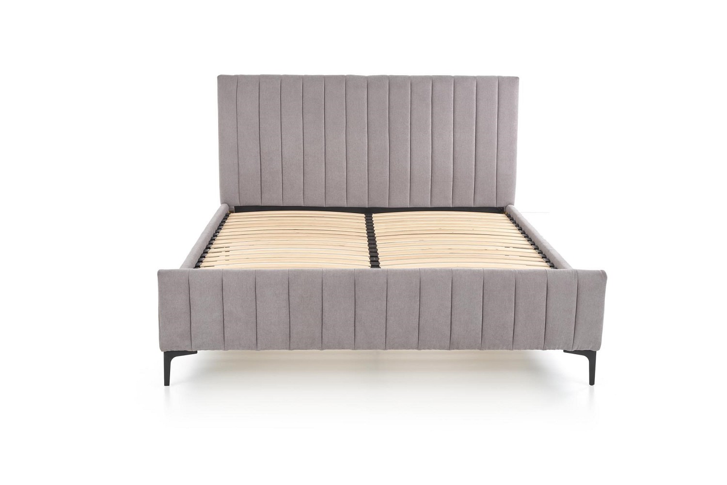 Nowoczesne łóżko FRANCESCA to eleganckie łóżko tapicerowane tkaniną w modnym jasnoszarym kolorze, z wygodnymi ozdobnymi przeszyciami na wezgłowiu, które zapewniają nam wygodne oparcie podczas czytania lub oglądania telewizji w łóżku. Stojak wykonany jest z metalowych nóg ze stali malowanej proszkowo w kolorze czarnym. Łóżko jest sprzedawane bez materaca, ale w zestawie ze stelażem z listewek. Materac pasujący do łózka to 160x200