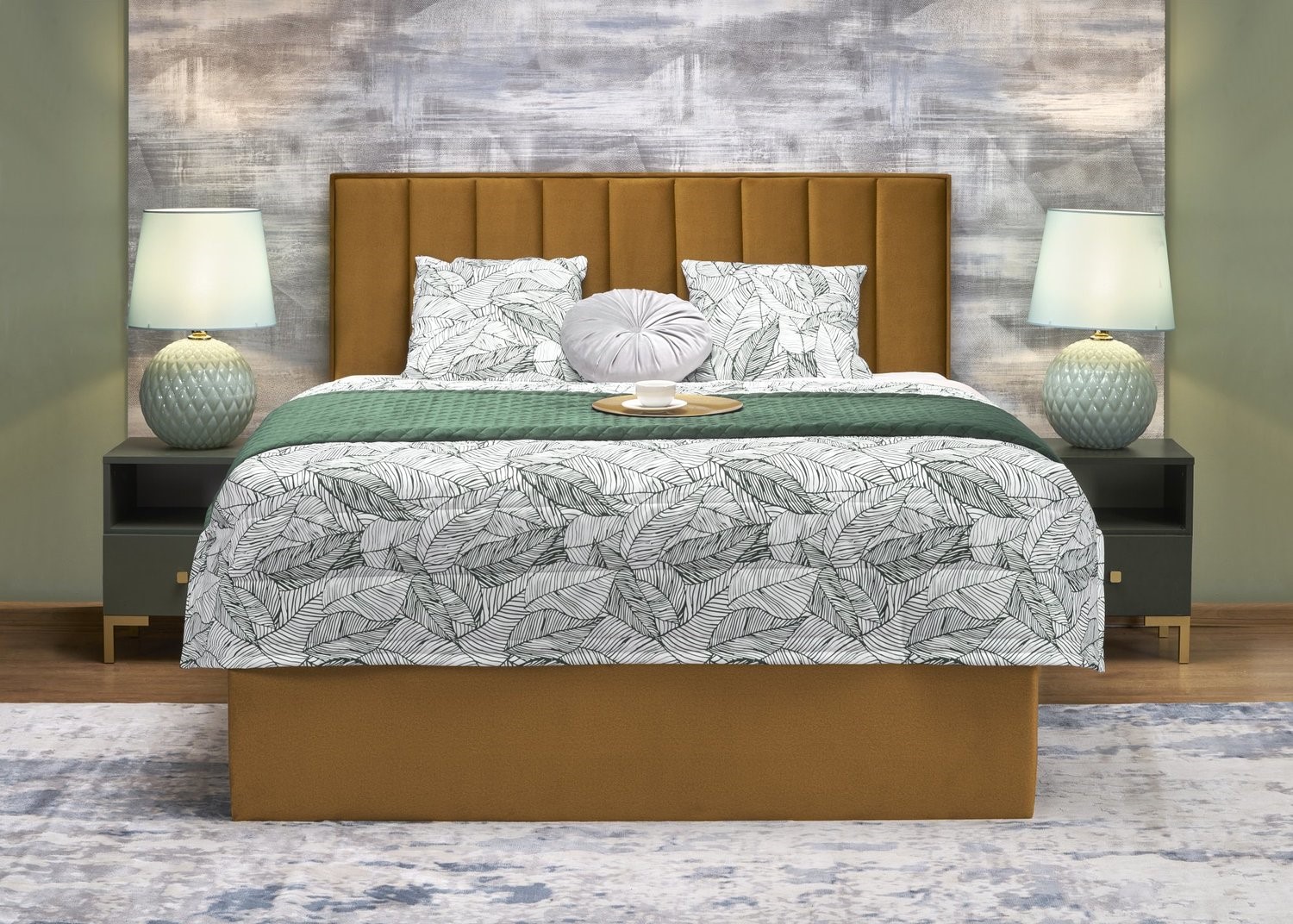 Łóżko Kontynentalne o eleganckim charakterze to idealne połączenie klasyki z nowoczesnością. Wykonane z dbałością o detale, stanowi zarówno praktyczne jak i estetyczne rozwiązanie do sypialni. Tapicerowane wezgłowie dodaje łóżku wyjątkowego uroku i komfortu, zapewniając wygodne oparcie podczas czytania czy odpoczynku. Szlachetna tkanina w kolorze musztardowym nadaje wnętrzu elegancji i stylu. Łóżko wyposażone jest w pojemnik na pościel, co czyni je praktycznym rozwiązaniem dla osób ceniących funkcjonalność. Wymiary powierzchni spania (materaca) 160x200 cm zapewniają odpowiednią przestrzeń do komfortowego snu dla dwóch osób. Łóżko o klasycznym, a jednocześnie nowoczesnym stylu wykonania stanowi doskonałe centrum każdej sypialni, nadając jej wyjątkowy charakter i elegancję.