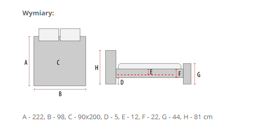 3 zalety produktu ŁÓŻKO LANTA 90X200 SZARY/CZARNY TAP. 54