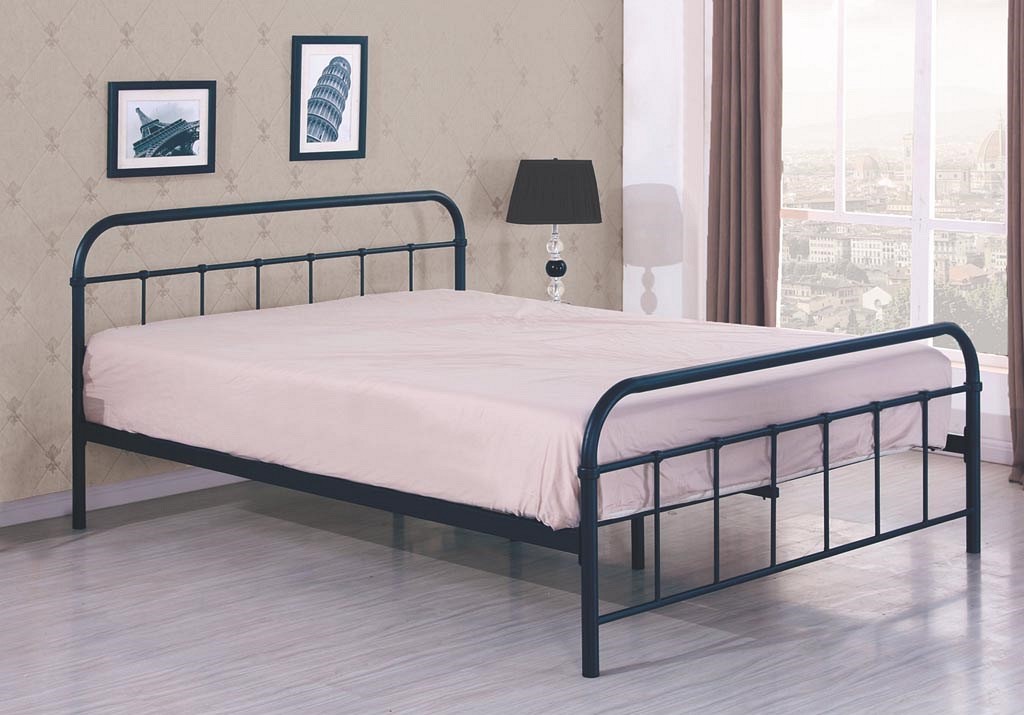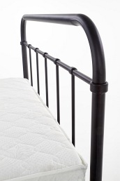 Łóżko LINDA to idealna propozycja dla osób ceniących prostotę. Charakteryzuje się minimalistyczną, metalową formą, dzięki której, mebel z łatwością wpasuje się w styl rustykalny lub nowoczesny. Konstrukcja wykonana została ze stali malowanej proszkowo w kolorze czarnym. Do łóżka dołączony jest stelaż wykonany z giętych listew, które indywidualnie dopasowują się do ciężaru ciała.