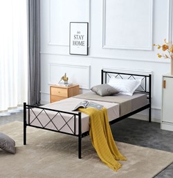 To łóżko metalowe cechuje się solidną konstrukcją, która zapewnia stabilność i trwałość na lata. Metalowa rama jest wytrzymała i odporna na uszkodzenia, co sprawia, że idealnie nadaje się do intensywnego użytkowania. Zastosowanie prostych linii oraz geometrycznych akcentów w zagłówku i przednóżku nadaje mu nowoczesnego, minimalistycznego wyglądu, pasującego do różnych stylów wnętrz. Dzięki swojej konstrukcji łóżko jest również łatwe w montażu i demontażu, co ułatwia transport i przestawianie w razie potrzeby. Metalowa powierzchnia jest odporna na zarysowania, co wpływa na jego estetykę nawet po dłuższym czasie użytkowania. Dodatkowo, zastosowanie materiału łatwego do czyszczenia sprawia, że łóżko to jest wyjątkowo praktyczne i higieniczne.