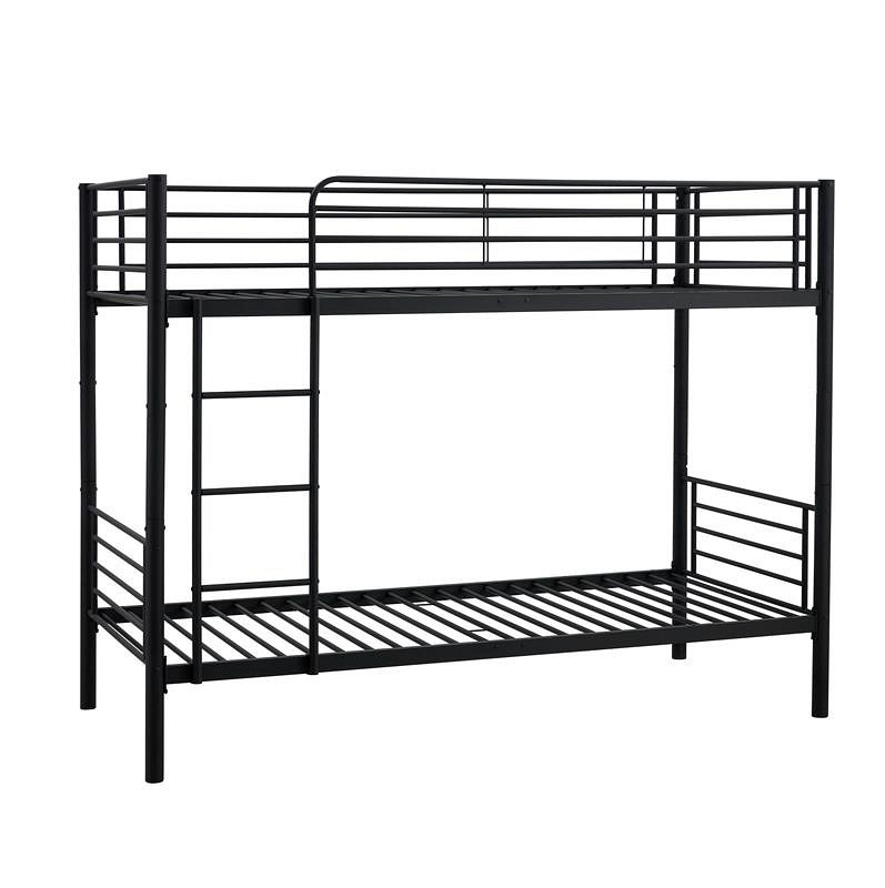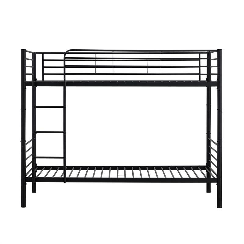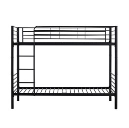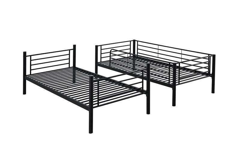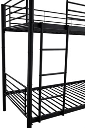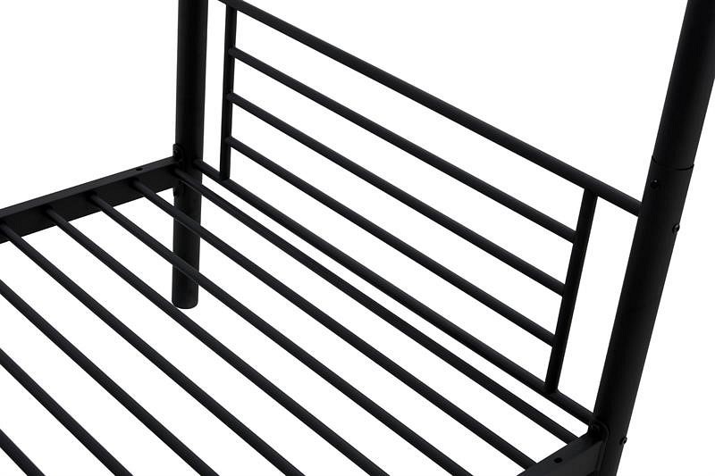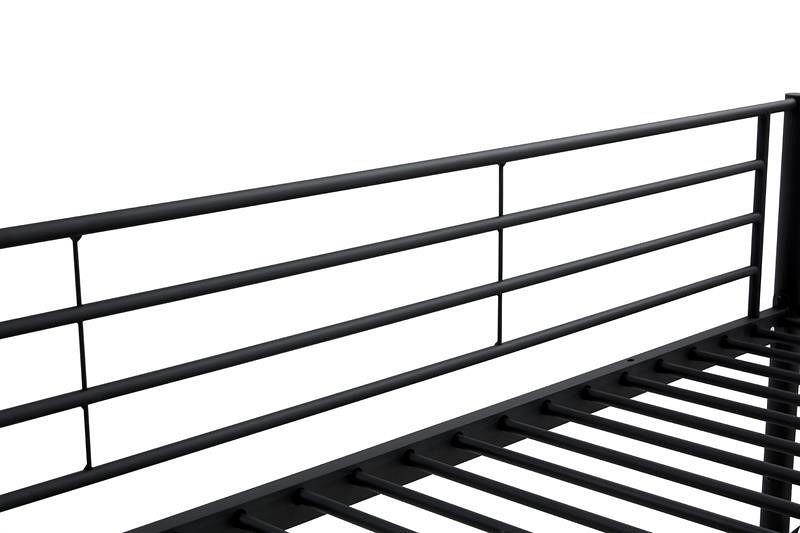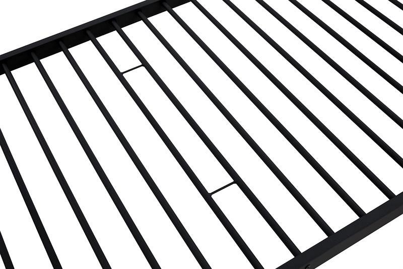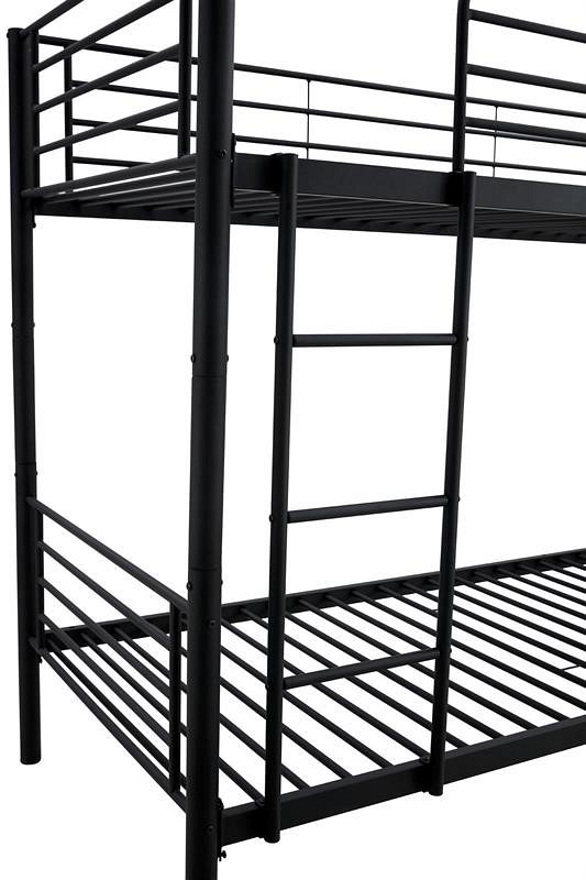 Łóżko piętrowe BUNKY to metalowe łóżko o wymiarach 90x200 wykonane w całości z czarnej stali proszkowej. Łóżka metalowe są mocne i trwałe, dlatego łóżko piętrowe BUNKY 90x200 posłuży nam przez długie lata. Łóżko piętrowe ma możliwość stworzenia dwóch osobnych łóżek, które sprawdzają się, gdy łóżko piętrowe nie jest potrzebne. Górna część łóżeczka wyposażona jest w barierkę ochronną, która chroni dziecko przed wypadnięciem z łóżeczka podczas snu. Dostęp do górnej koi zapewnia drabina.