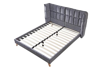 Miękkie łóżko SCANDINO VELVET to mebel, którego konstrukcja pokryta jest szarą aksamitną tkaniną. Aksamit charakteryzuje się miękkością i delikatnym połyskiem w słońcu. Dodatkowo w zależności od ułożenia włosków tkaniny subtelnie zmienia się kolor materiału. Dzięki ozdobnemu wezgłowiu łóżka SCANDINO VELVET możesz wygodnie odpocząć podczas czytania książki lub oglądania telewizji. Widoczne w łóżku ozdobne szwy nadają łóżku eleganckiego wyglądu. Nogi łóżka w kolorze naturalnego drewna stabilnie podtrzymują łóżko. Wysokość nóżek 14 cm umożliwia sprzątanie pod łóżkiem. W łóżku nie ma materaca. W naszym sklepie możesz skorzystać z szerokiej gamy materacy. Decydując się na zakup materaca należy wybrać rozmiar 160x200. Łóżko SCANDINO VELVET to doskonały wybór do eleganckiej sypialni. 160 miejsc noclegowych daje nam możliwość komfortowego wypoczynku po całym dniu.