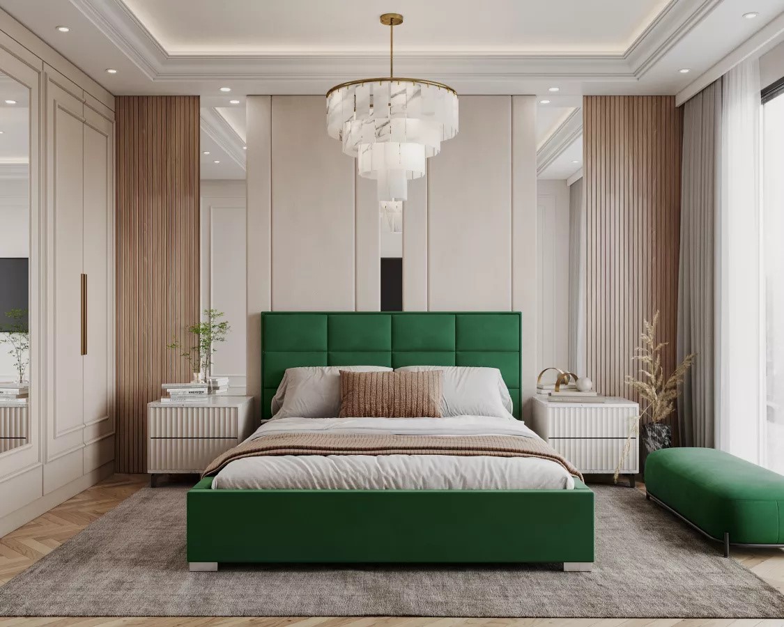 Łóżko tapicerowane APOLLO to elegancki i funkcjonalny element wyposażenia sypialni, który zachwyca ponadczasowym designem. Dzięki starannemu wykonaniu oraz wysokiej jakości materiałom stanowi doskonałe połączenie estetyki z komfortem. Podnoszony metalowy stelaż wyposażony w siłowniki gazowe ułatwia dostęp do przestronnego pojemnika na pościel, oferując dodatkowe miejsce do przechowywania. Tapicerowane wezgłowie dodaje wnętrzu przytulności, a możliwość wyboru tkaniny pozwala na idealne dopasowanie łóżka do aranżacji wnętrza. Funkcjonalność i estetyka modelu APOLLO sprawiają, że to rozwiązanie, które spełnia oczekiwania zarówno pod kątem praktyczności, jak i wyjątkowego stylu. To idealne łóżko dla osób ceniących komfort i porządek w sypialni.