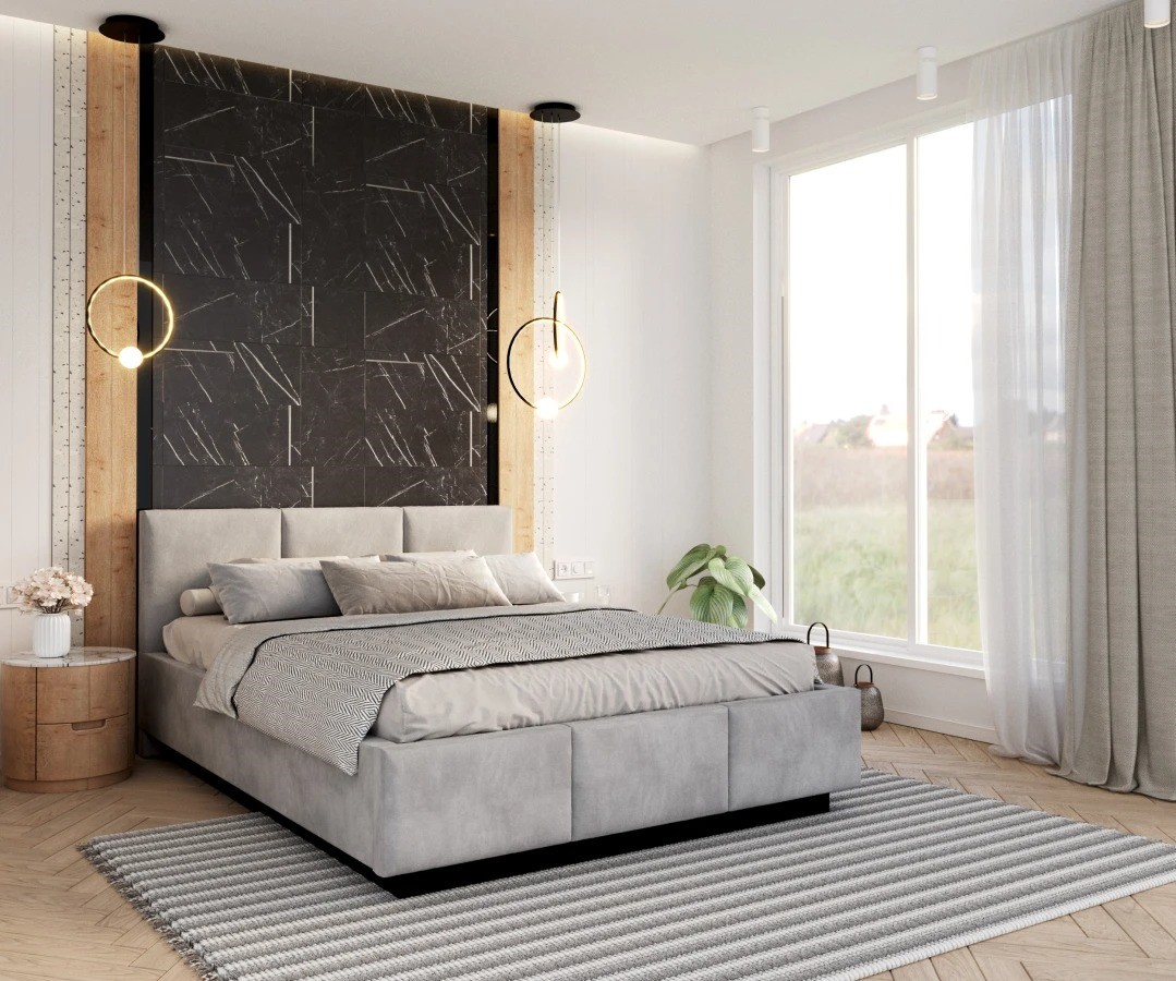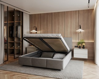 Prezentowane łóżko tapicerowane to elegancki i funkcjonalny element wyposażenia sypialni, który zachwyca ponadczasowym designem. Dzięki starannemu wykonaniu oraz wysokiej jakości materiałom stanowi doskonałe połączenie estetyki z komfortem. Podnoszony metalowy stelaż wyposażony w siłowniki gazowe ułatwia dostęp do przestronnego pojemnika na pościel, oferując dodatkowe miejsce do przechowywania. Tapicerowane wezgłowie dodaje wnętrzu przytulności, a możliwość wyboru tkaniny pozwala na idealne dopasowanie łóżka do aranżacji wnętrza. Funkcjonalność i estetyka łóżka sprawiają, że to rozwiązanie, które spełnia oczekiwania zarówno pod kątem praktyczności, jak i wyjątkowego stylu. To idealne łóżko dla osób ceniących komfort i porządek w sypialni.