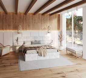 Łóżko tapicerowane DENVER stanowi idealny wybór dla miłośników stylowych i komfortowych rozwiązań w sypialni. Jego innowacyjny projekt łączy klasyczną konstrukcję z panelami ściennymi, pełniącymi rolę zagłówka. Dzięki temu łóżko DENVER nadaje wnętrzu wyjątkowy, nowoczesny charakter, jednocześnie umożliwiając indywidualną aranżację przestrzeni. Panelowe zagłówki wyróżniają się znacznie szerszą konstrukcją niż standardowe modele, co nadaje sypialni elegancji i prestiżu. Łóżko tapicerowane DENVER to nie tylko estetyka, ale także praktyczność. Prosty system montażu zarówno skrzyni, jak i paneli ściennych czyni je wyjątkowo wygodnym rozwiązaniem. To idealny wybór dla osób, które chcą połączyć funkcjonalność, komfort i wyjątkowy styl w jednym meblu.