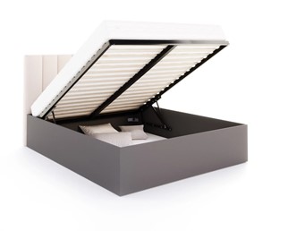 Prezentowane łóżko tapicerowane to elegancki i funkcjonalny element wyposażenia sypialni, który zachwyca ponadczasowym designem. Dzięki starannemu wykonaniu oraz wysokiej jakości materiałom stanowi doskonałe połączenie estetyki z komfortem. Podnoszony metalowy stelaż wyposażony w siłowniki gazowe ułatwia dostęp do przestronnego pojemnika na pościel, oferując dodatkowe miejsce do przechowywania. Tapicerowane wezgłowie dodaje wnętrzu przytulności, a możliwość wyboru tkaniny pozwala na idealne dopasowanie łóżka do aranżacji wnętrza. Funkcjonalność i estetyka łóżka sprawiają, że to rozwiązanie, które spełnia oczekiwania zarówno pod kątem praktyczności, jak i wyjątkowego stylu. To idealne łóżko dla osób ceniących komfort i porządek w sypialni.