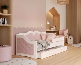 Model JESSICA to łóżko dziecięce, które przyciąga wzrok dzięki efektownemu zagłówkowi ozdobionemu połyskującymi kryształkami. Tapicerowane boki dodają mu elegancji i przytulności, jednocześnie zapewniając bezpieczeństwo podczas codziennego użytkowania. Idealne dla małej księżniczki lub fana błyskotek, łóżko to wprowadza do wnętrza nutę luksusu i wyjątkowego stylu. Doskonale sprawdzi się w pokoju dziecięcym, gdzie liczy się zarówno wygląd, jak i funkcjonalność.