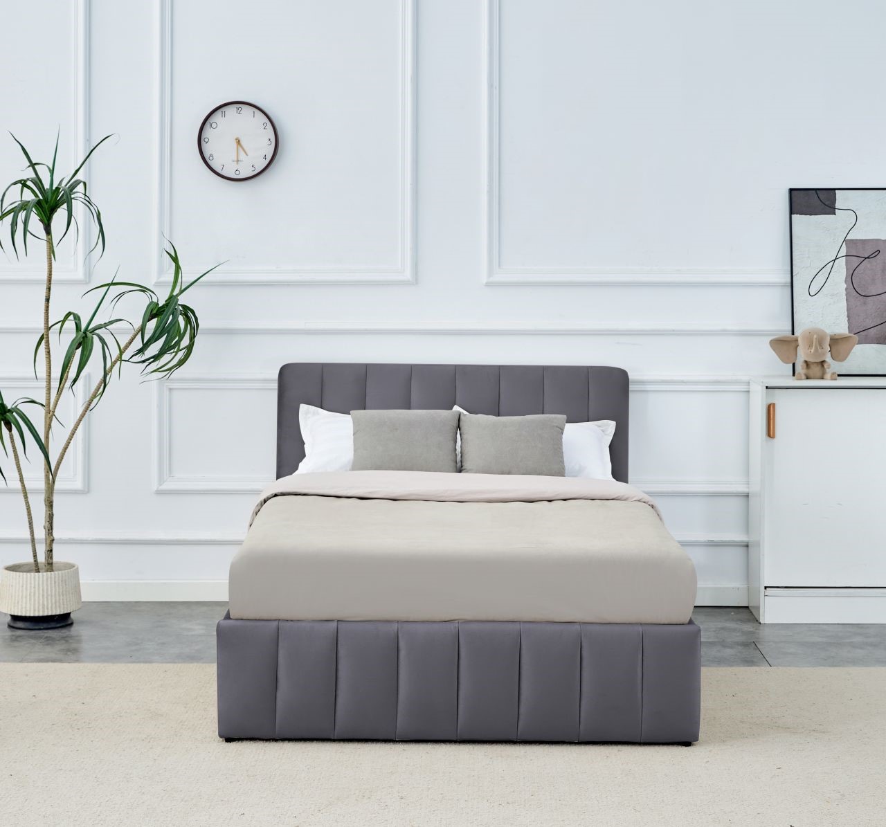 Prezentowane łóżko tapicerowane to elegancki i komfortowy mebel, który wprowadza do sypialni wyjątkowy charakter i przytulność. Miękkie, tapicerowane wezgłowie zapewnia wygodę, a solidna konstrukcja gwarantuje stabilność i trwałość na lata. Tapicerka wykonana z wysokiej jakości tkaniny jest przyjemna w dotyku, odporna na przetarcia i łatwa w utrzymaniu czystości. To idealne rozwiązanie dla osób ceniących komfort, estetykę i ponadczasowy styl w swojej sypialni.