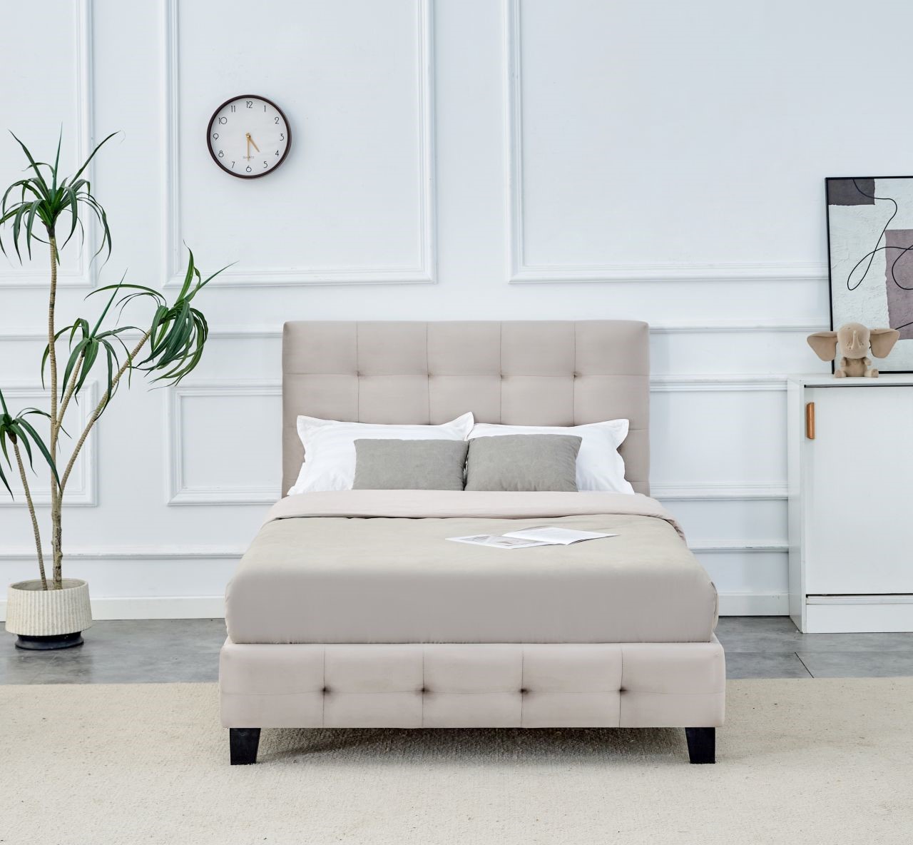 Prezentowane łóżko tapicerowane to elegancki i komfortowy mebel, który wprowadza do sypialni wyjątkowy charakter i przytulność. Miękkie, tapicerowane wezgłowie zapewnia wygodę, a solidna konstrukcja gwarantuje stabilność i trwałość na lata. Tapicerka wykonana z wysokiej jakości tkaniny jest przyjemna w dotyku, odporna na przetarcia i łatwa w utrzymaniu czystości. To idealne rozwiązanie dla osób ceniących komfort, estetykę i ponadczasowy styl w swojej sypialni.