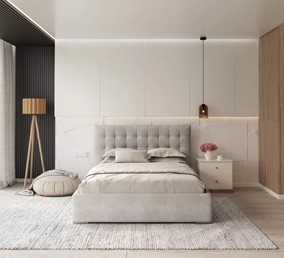 Łóżko tapicerowane LUCERNA spełnia wszystkie te wymagania, łącząc klasyczny design z nowoczesnymi akcentami. Jego stylowy wygląd odmienia każdą sypialnię, wprowadzając do niej harmonię i przytulność. LUCERNA została zaprojektowana z myślą o komforcie i praktyczności. Wyposażona w podnoszony stelaż z dwoma siłownikami gazowymi, pozwala na łatwy dostęp do pojemnika pod łóżkiem, co czyni ją idealnym rozwiązaniem do przechowywania. Sprężynujące listwy w stelażu zapewniają nie tylko wygodę, ale także odpowiednią wentylację materaca, zapobiegając jego odkształceniom oraz gromadzeniu się wilgoci i roztoczy.