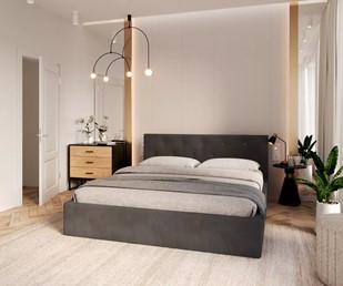 Łóżko tapicerowane MIRAGE to mebel, który łączy wygodę z estetyką i trwałością. Do jego wykończenia wybraliśmy wyjątkową tkaninę welurową, która charakteryzuje się delikatną strukturą oraz puszystością, zapewniając niezwykłą miękkość i przyjemność w dotyku. Jednocześnie materiał ten wyróżnia się wysoką odpornością na ścieranie, mechacenie oraz działanie światła słonecznego, co gwarantuje jego trwałość i niezmienny wygląd przez lata.