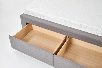Gustowne łóżko MODENA to dobry sposób na elegancką oraz przytulną sypialnię. To idealna propozycja dla osób ceniących komfort i wygodę podczas snu. Pojemne szuflady przeznaczone na pościel, gwarantują czystość i odpowiednią wentylację. Stabilna konstrukcja została obszyta wysokiej jakości tkaniną w kolorze popielatym. Do łóżka dołączony jest stelaż wykonany z giętych listew, które indywidualnie dopasowują się do ciężaru ciała. Pięknie komponuje się z szafką nocną PRIMA 2 w kolorze popielatym, którą można znaleźć w naszej ofercie.