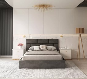 Łóżko tapicerowane PASADENA to połączenie klasyki z nowoczesnością, które sprawia, że każda chwila spędzona w sypialni staje się przyjemnością. Jego ponadczasowy design, funkcjonalność oraz starannie dobrane materiały sprawiają, że stanowi doskonały wybór zarówno pod względem estetyki, jak i komfortu. Łóżko PASADENA zachwyca swoim wyglądem i praktycznym podejściem do aranżacji sypialni. Odpowiednio zaprojektowana konstrukcja oraz dbałość o detale sprawiają, że model ten doskonale prezentuje się zarówno w nowoczesnych, jak i klasycznych wnętrzach. Jego ergonomiczny design gwarantuje wygodę, a atrakcyjne wykończenie nadaje sypialni wyjątkowego charakteru.