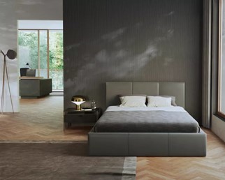Łóżko tapicerowane PRESTIGE to połączenie elegancji, trwałości i funkcjonalności. Do jego wykończenia zastosowano najwyższej jakości skórę naturalną, która charakteryzuje się wyjątkową estetyką oraz wytrzymałością, będąc jednym z najtrwalszych materiałów używanych w tapicerstwie. Model PRESTIGE wyposażony jest w przestronny pojemnik na pościel.