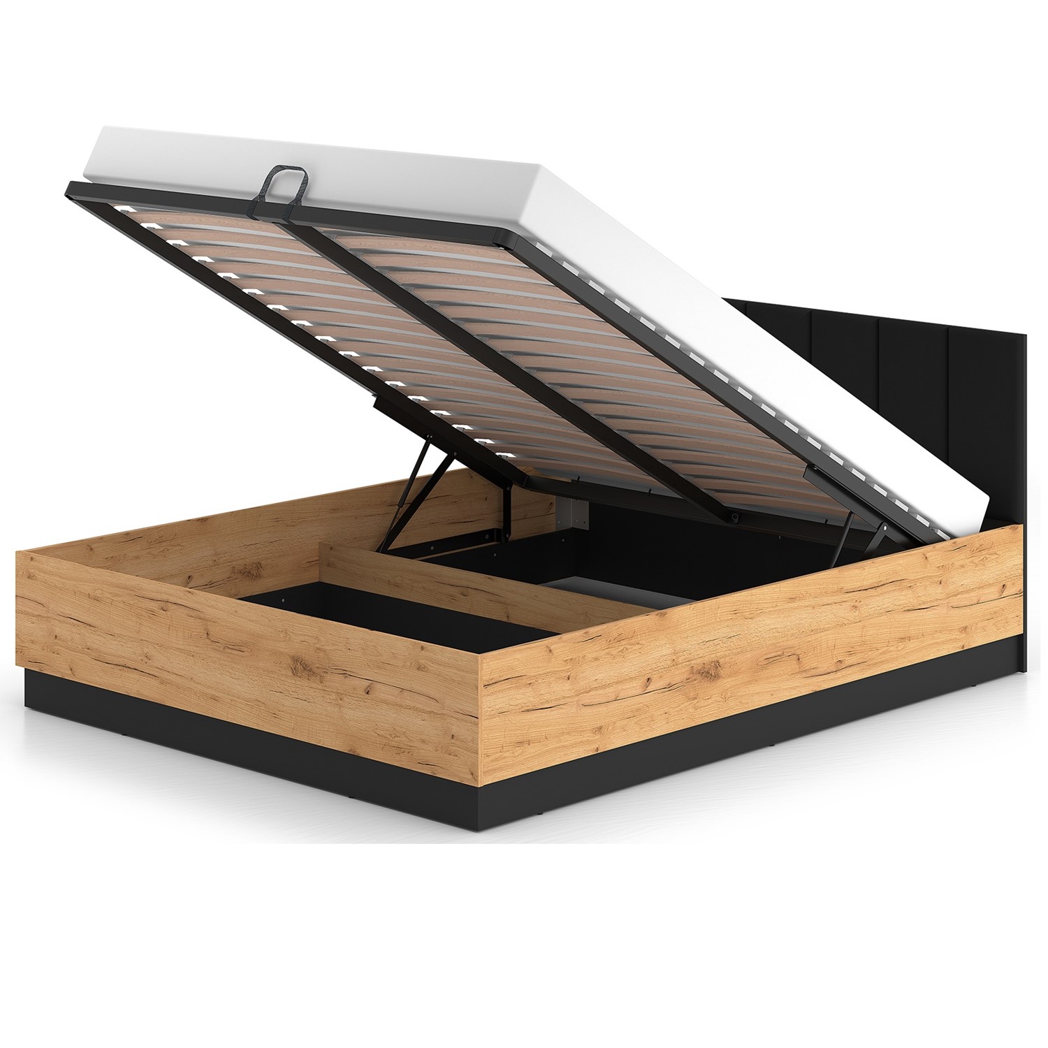 Łóżko URSO 1401 to wyjątkowa propozycja o wymiarach 160x200 cm, idealna do większych sypialni. Połączenie ciepłego odcienia drewna i czerni dodaje elegancji, a dołączony stelaż zapewnia wygodę użytkowania. Materiały najwyższej jakości gwarantują trwałość.