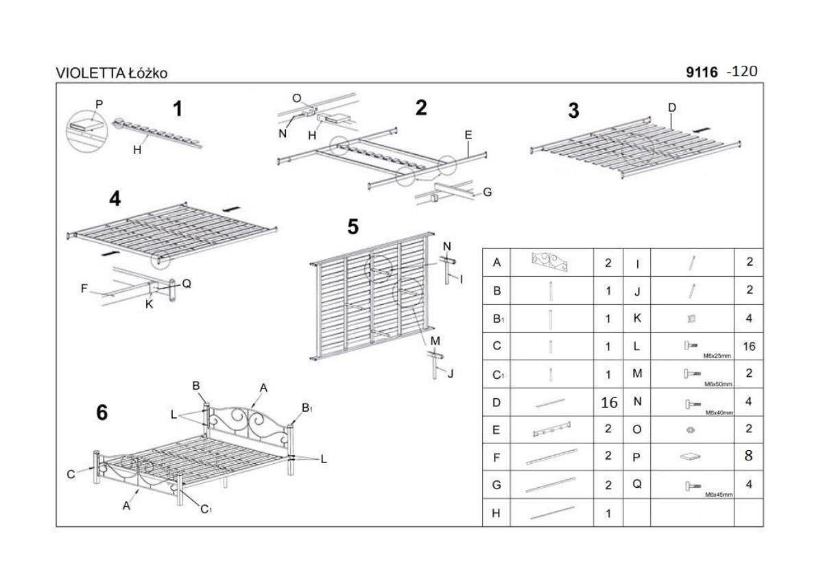 VIOLETTA to idealny wybór do sypialni. Wpasuje się zarówno w nowoczesne jaki i klasyczne wnętrze. Charakteryzuje się ozdobną ramą z motywem spirali oraz połączeniem metalu z drewnem. Konstrukcję wykonano z drewna litego i stali malowanej. Do łóżka dołączony jest stelaż stworzony z giętych listew, który indywidualnie dopasowuje się do każdego ciężaru ciała.