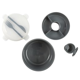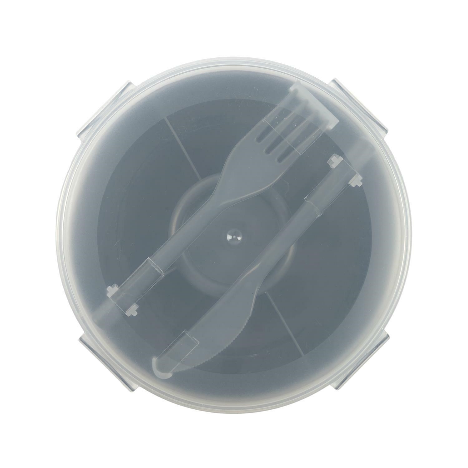 Lunch Box ROUND 1,4l Zielony to praktyczne i stylowe rozwiązanie do przechowywania posiłków. Wykonany z trwałego plastiku, zapewnia długotrwałą użyteczność i wygodę. Jego okrągły kształt oraz zielony kolor nadają mu nowoczesny wygląd, który pasuje do każdej torby czy plecaka. Przykrywka z zatrzaskami gwarantuje bezpieczne zamknięcie, eliminując ryzyko wycieków i utrzymując świeżość jedzenia. Wewnątrz znajduje się wkład podzielony na 4 komory, co umożliwia oddzielenie różnych składników posiłku, takich jak owoce, warzywa, sałatki i inne dania. Dodatkowo, lunch box wyposażony jest w plastikowy nóż i widelec, co ułatwia spożywanie posiłków w dowolnym miejscu. Ten lunch box jest również zmywalny w zmywarce, co ułatwia jego czyszczenie i utrzymanie w czystości. Idealny do pracy, szkoły czy na piknik, Lunch Box ROUND 1,4l Zielony to doskonały wybór dla osób ceniących funkcjonalność i estetykę.