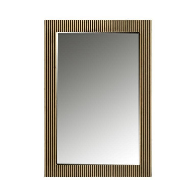 Eleganckie, luksusowe lustro zostało stworzone z grubej płyty MDF wykończonej mosiądzem. Lustro ma wymiary: szerokość 71 cm, wysokość 104,5 cm i głębokość 2,5 cm. Jest to idealny dodatek do każdego pomieszczenia, aby uzyskać nowoczesny i elegancki wygląd.